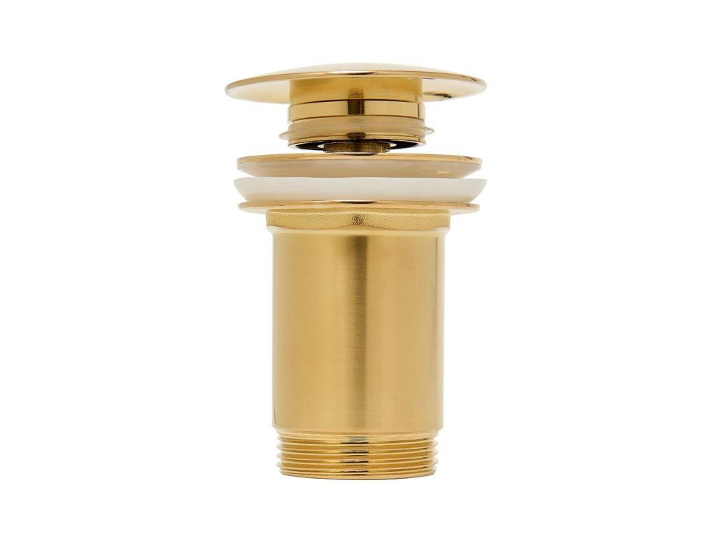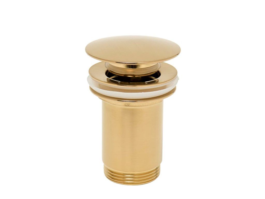 Výpust umyvadlová Alca CLICK/CLACK 5/4" celokovová s přepadem, velká zátka. Zlatá matná.Doplňkové parametry