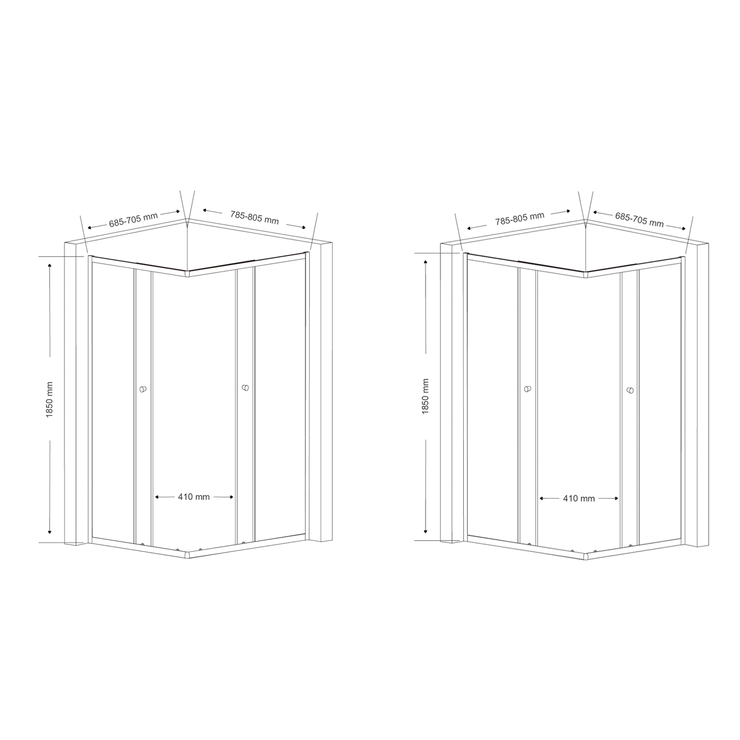 Aqualine AGGA obdélníková sprchová zástěna 800x700mm, čiré sklo HLF708Y