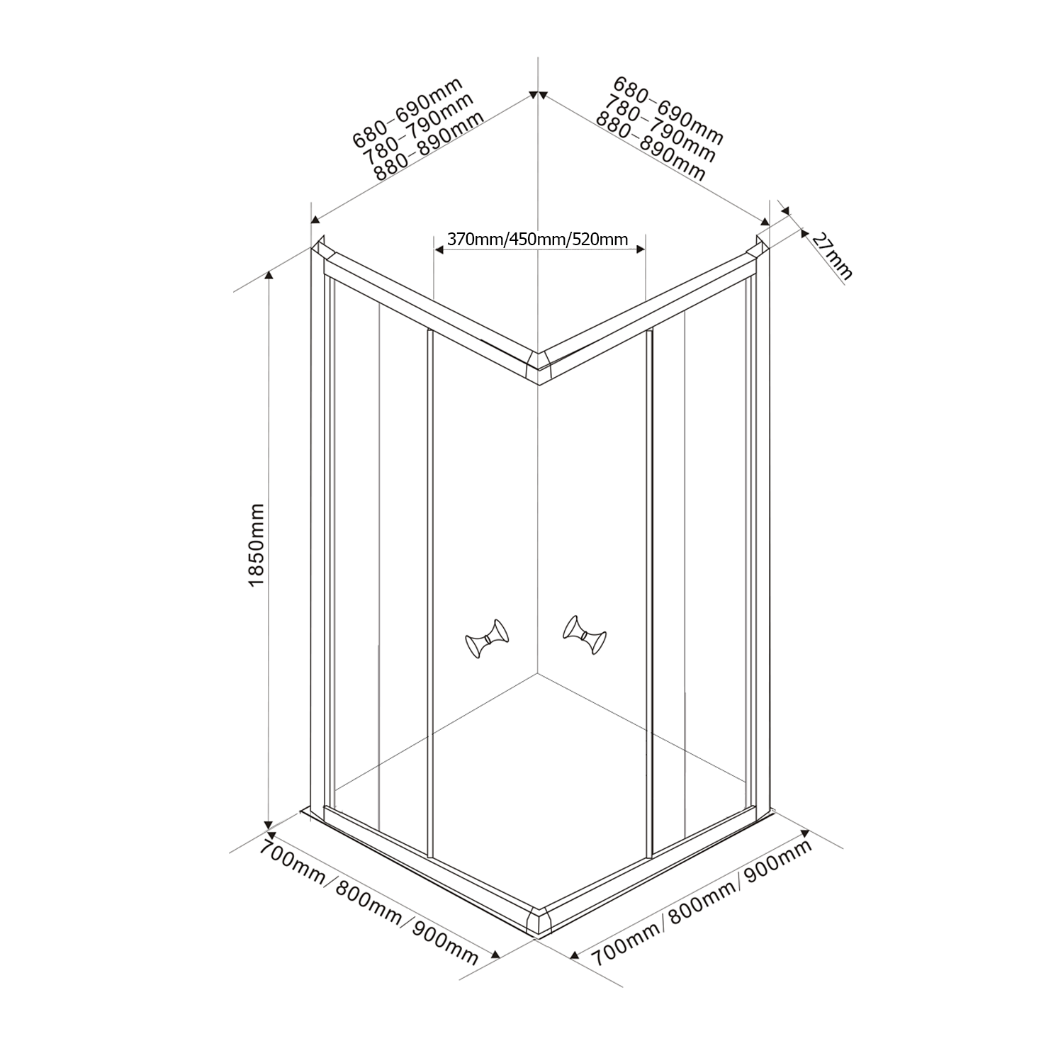 Aqualine ALAIN čtvercová sprchová zástěna 700x700 mm, sklo Brick BTQ700