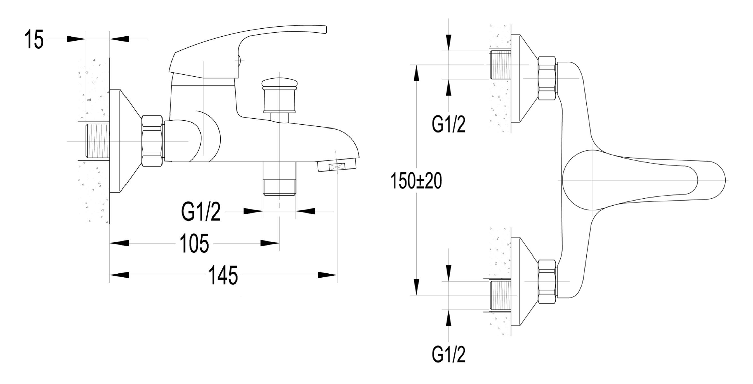 Aqualine AQUALINE 35 nástěnná vanová baterie, chrom 52118