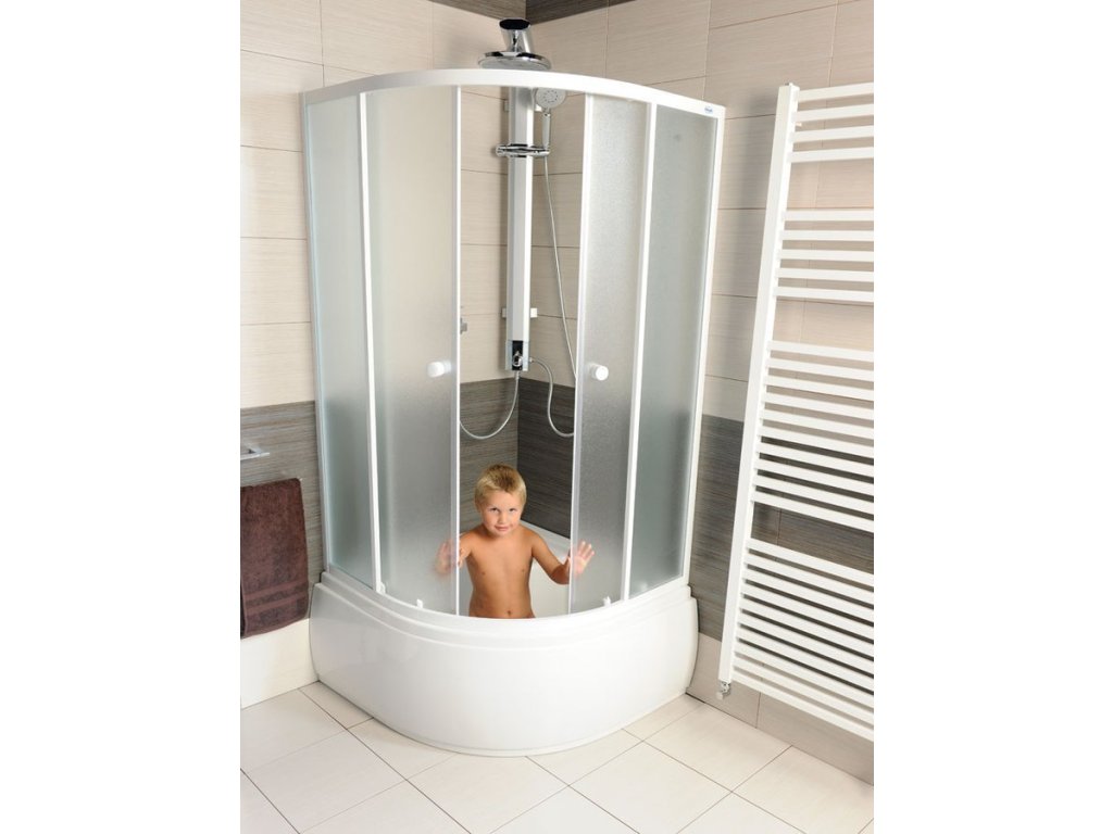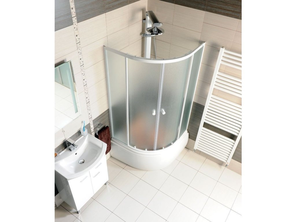 ARLEN sprchový kout určený, díky své snížené výšce 150 cm a standardnímu poloměru zakřivení (550 mm), k osazení na vysoké sedací vaničky (minivany).