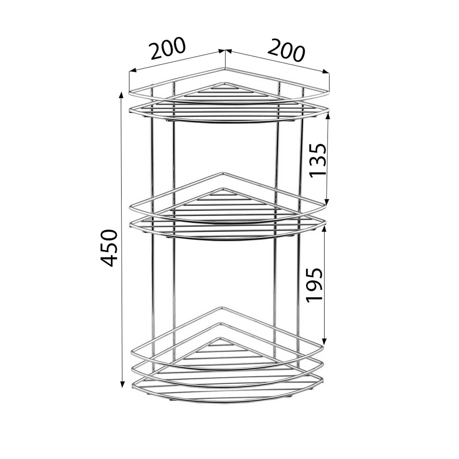 Aqualine CHROM LINE drátěná rohová police trojitá, chrom 37015