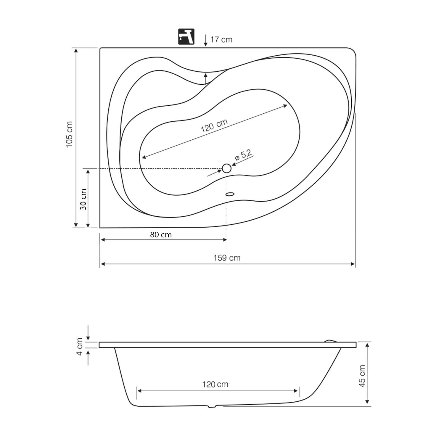 Aqualine CIDLINA 160 vana 160x105x45cm, levá, bílá G3615