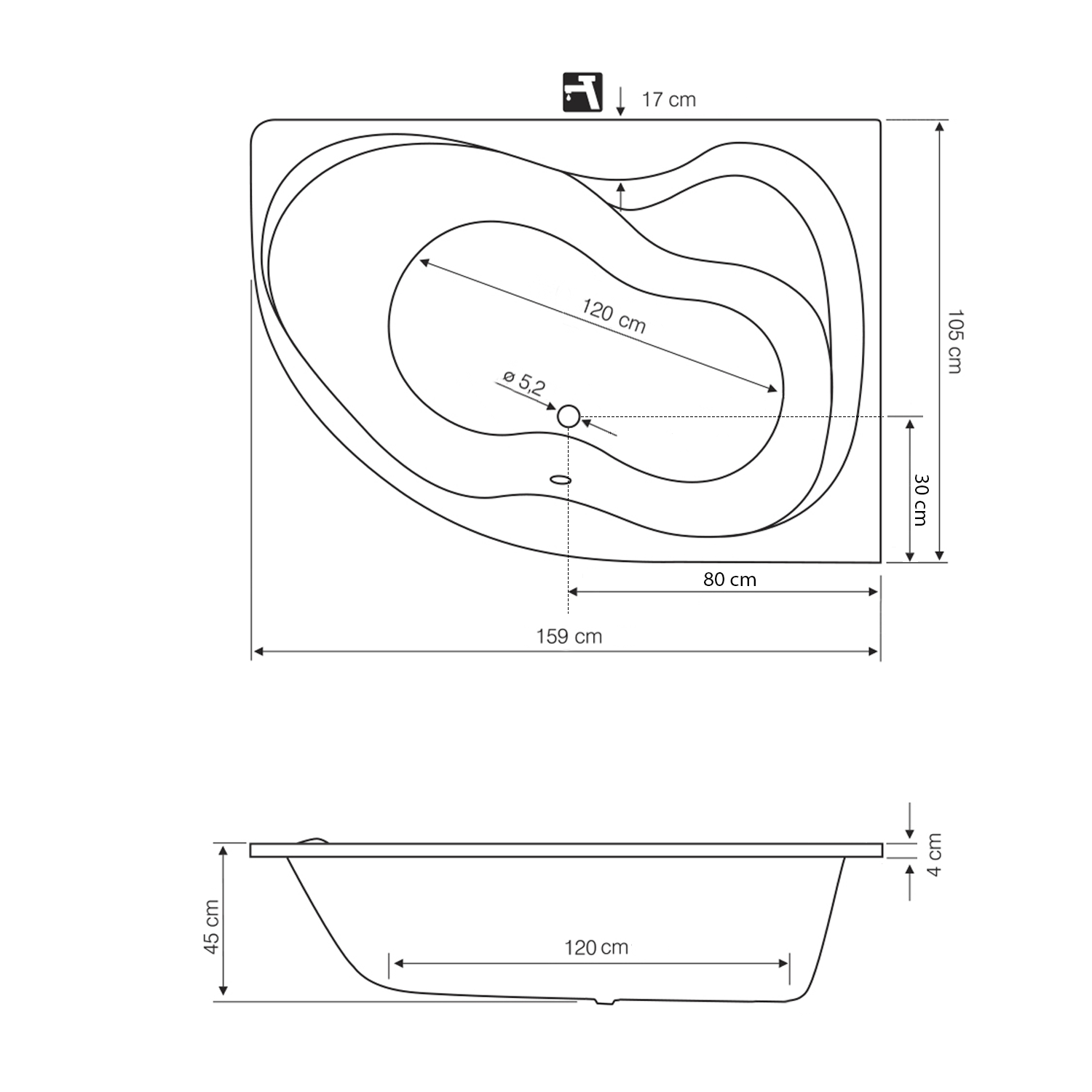 Aqualine CIDLINA 160 vana 160x105x45cm, pravá, bílá G3614
