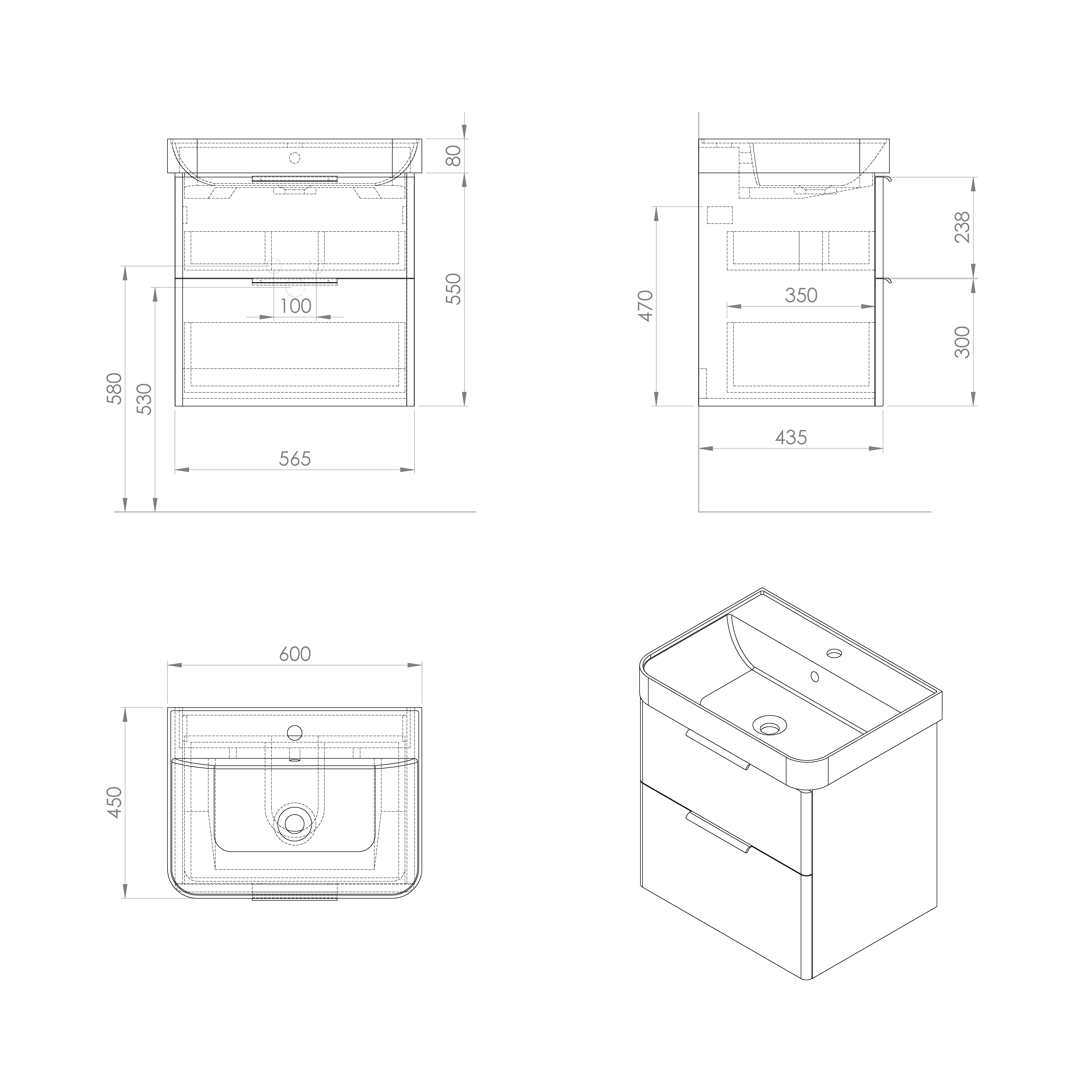 Aqualine DENEB umyvadlová skříňka 56,5x55x43,5cm, bílá mat DN260