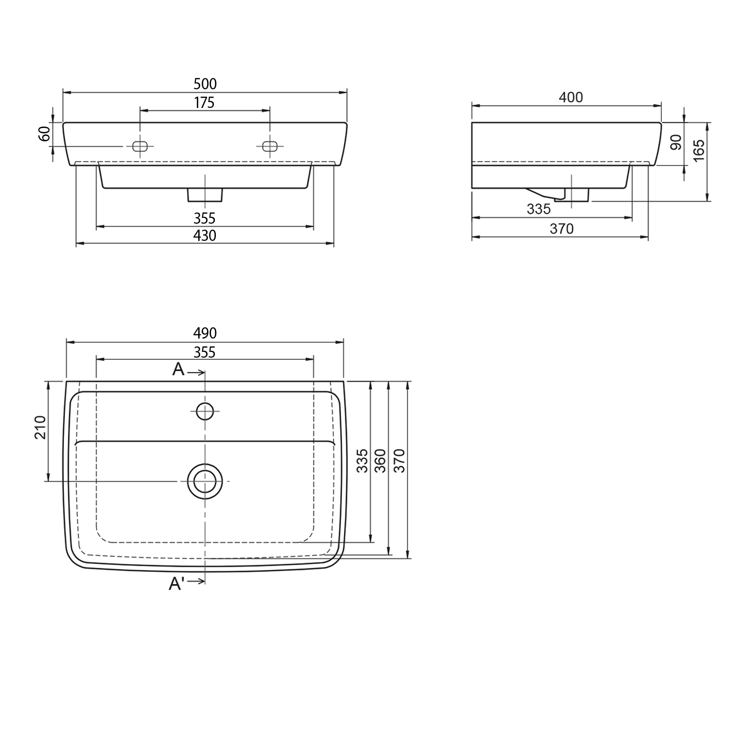 Aqualine DURU keramické umyvadlo 50x40cm, bílá TU0350
