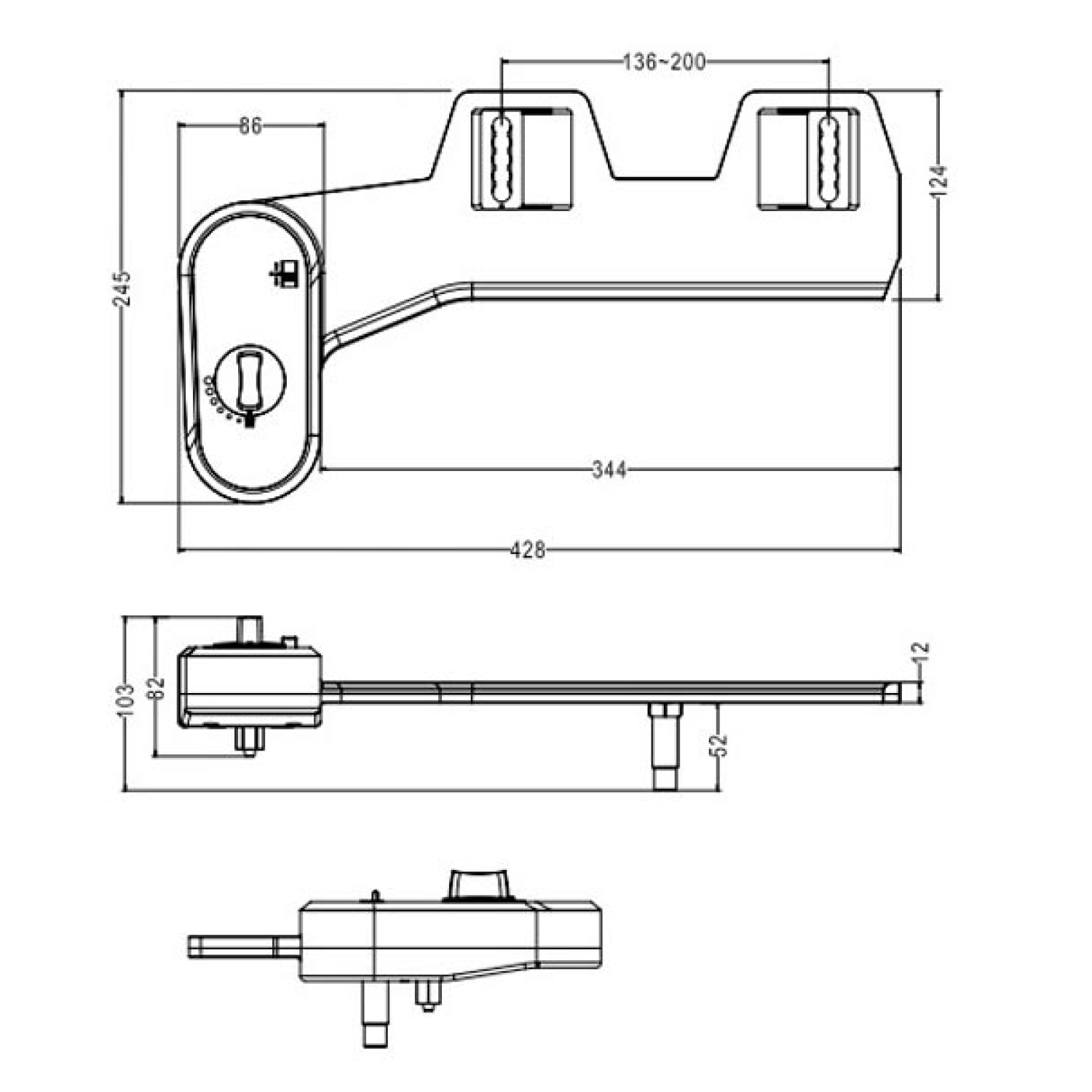 - Přídavný bidet lze dodatečně instalovat pod WC sedátko, je vhodný pro většinu typů WC mís. Rozteč uchycení je 136 - 200 mm.