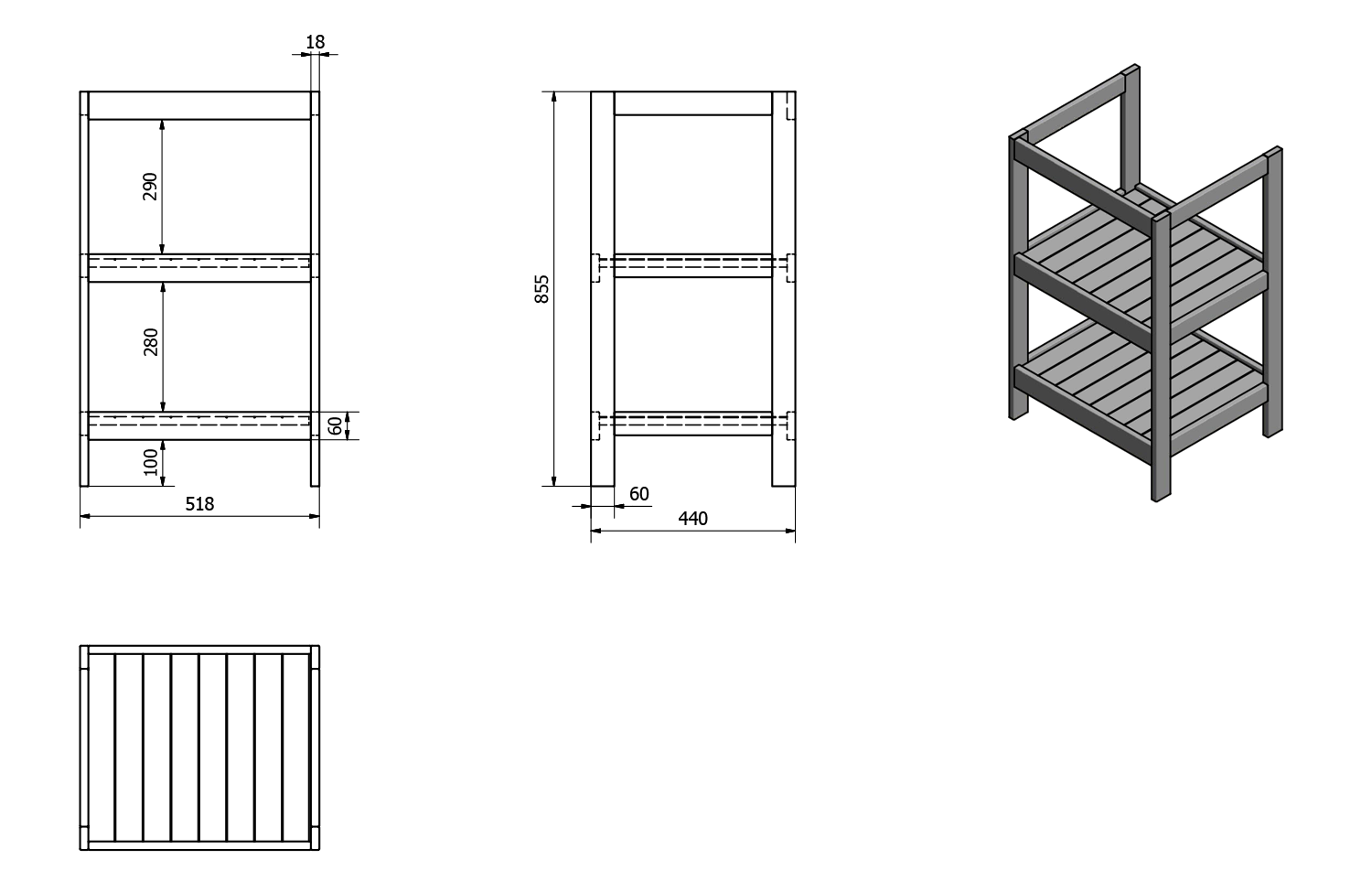 Policové skříňky jsou dodávány v předinstalovaném stavu, v několika dílech pro snadnou montáž. Skříňky se zásuvkou jsou dodávány v plně smontovaném stavu.
