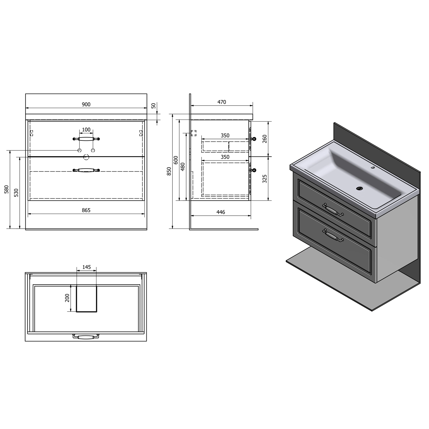 Aqualine FAVOLO umyvadlová skříňka 86,5x60x44,6cm, bílá mat FV290