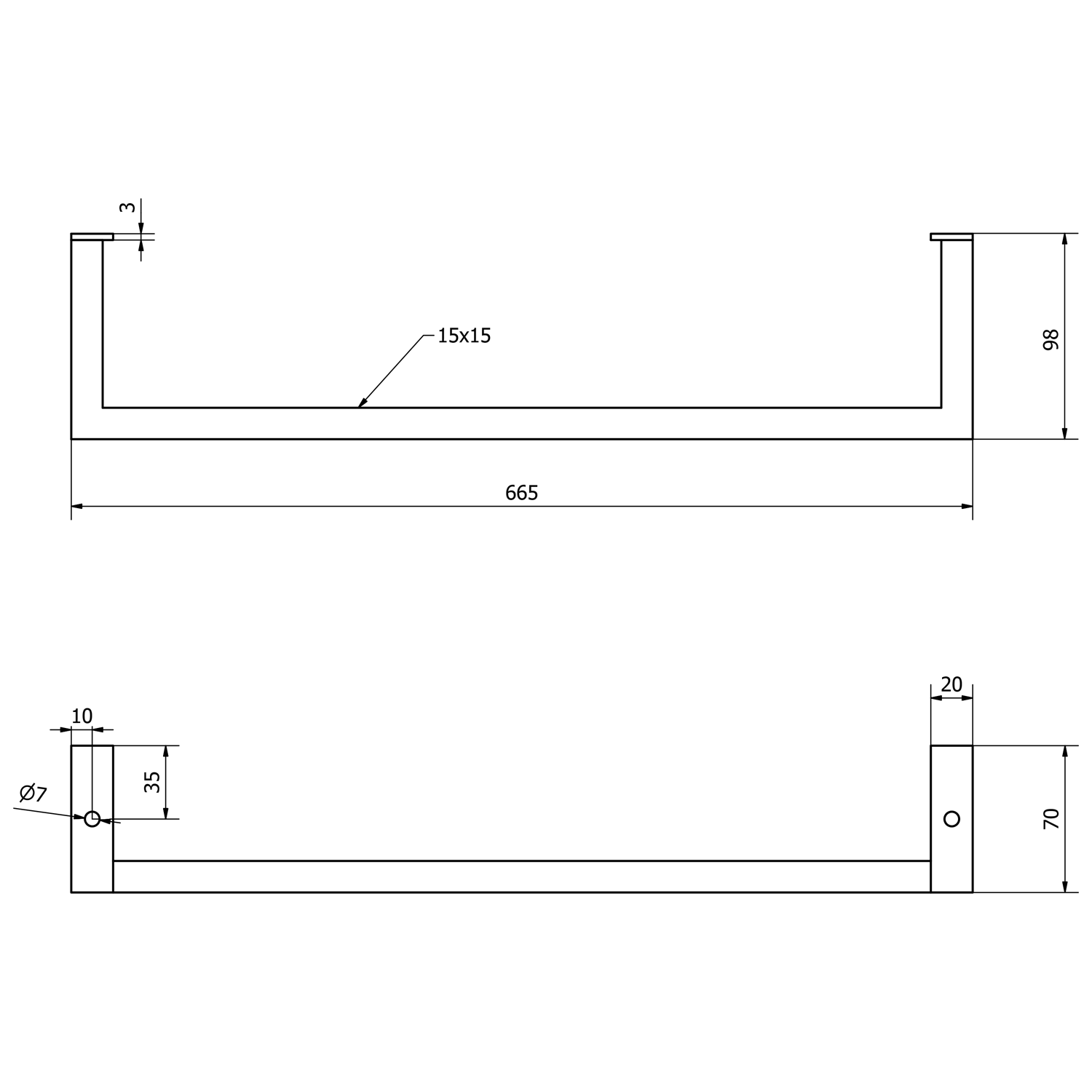 Aqualine HANG držák ručníků pod umyvadlo 665x98mm, černá mat HG665