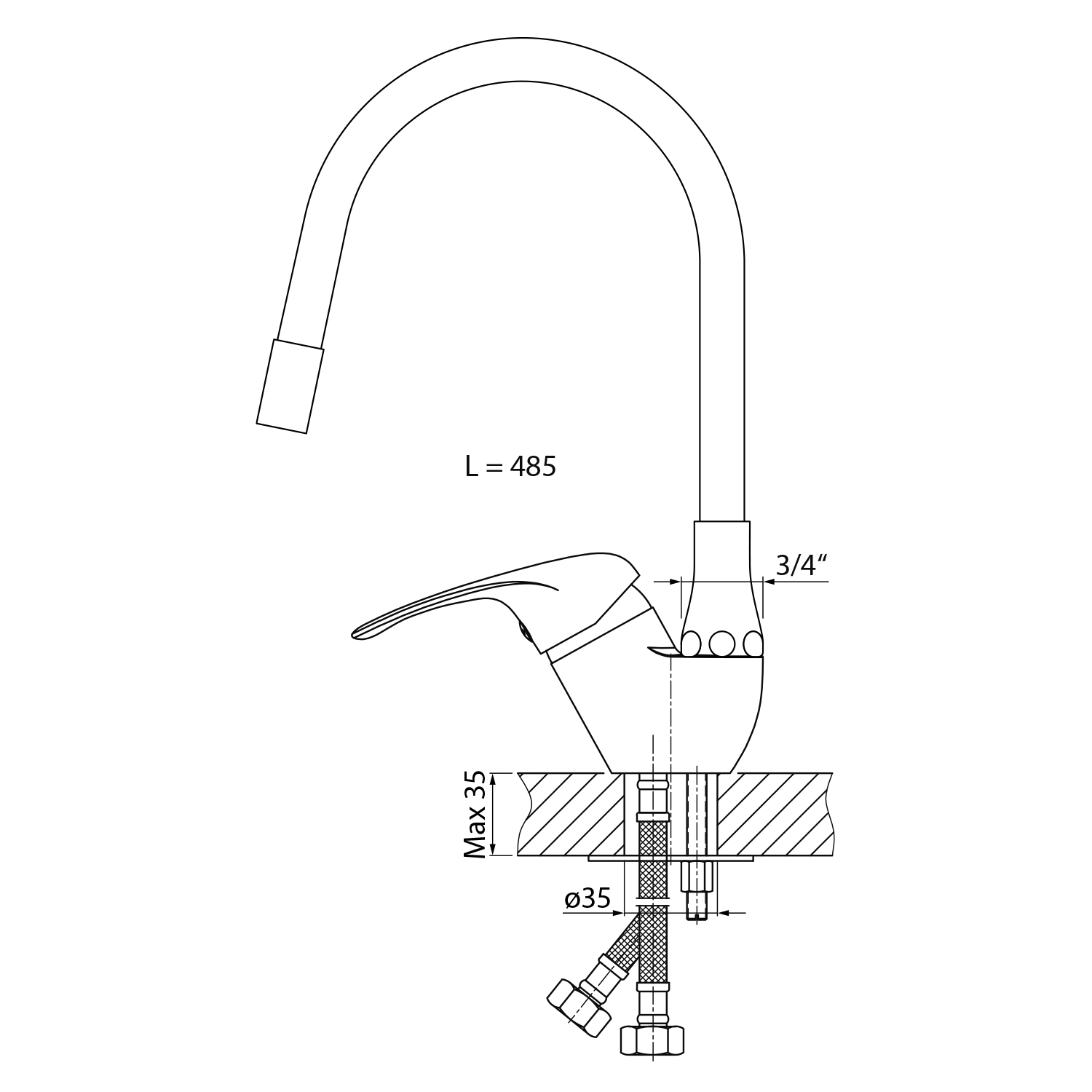 Aqualine KASIOPEA 35 stojánková dřezová baterie, flexibilní ramínko, chrom/černá mat 1107-65F