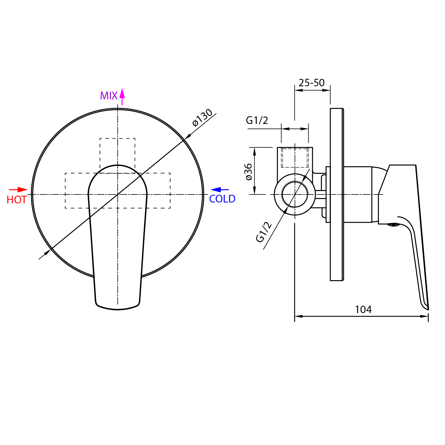 Aqualine LOTTA podomítková sprchová baterie, 1 výstup, černá mat LT741B