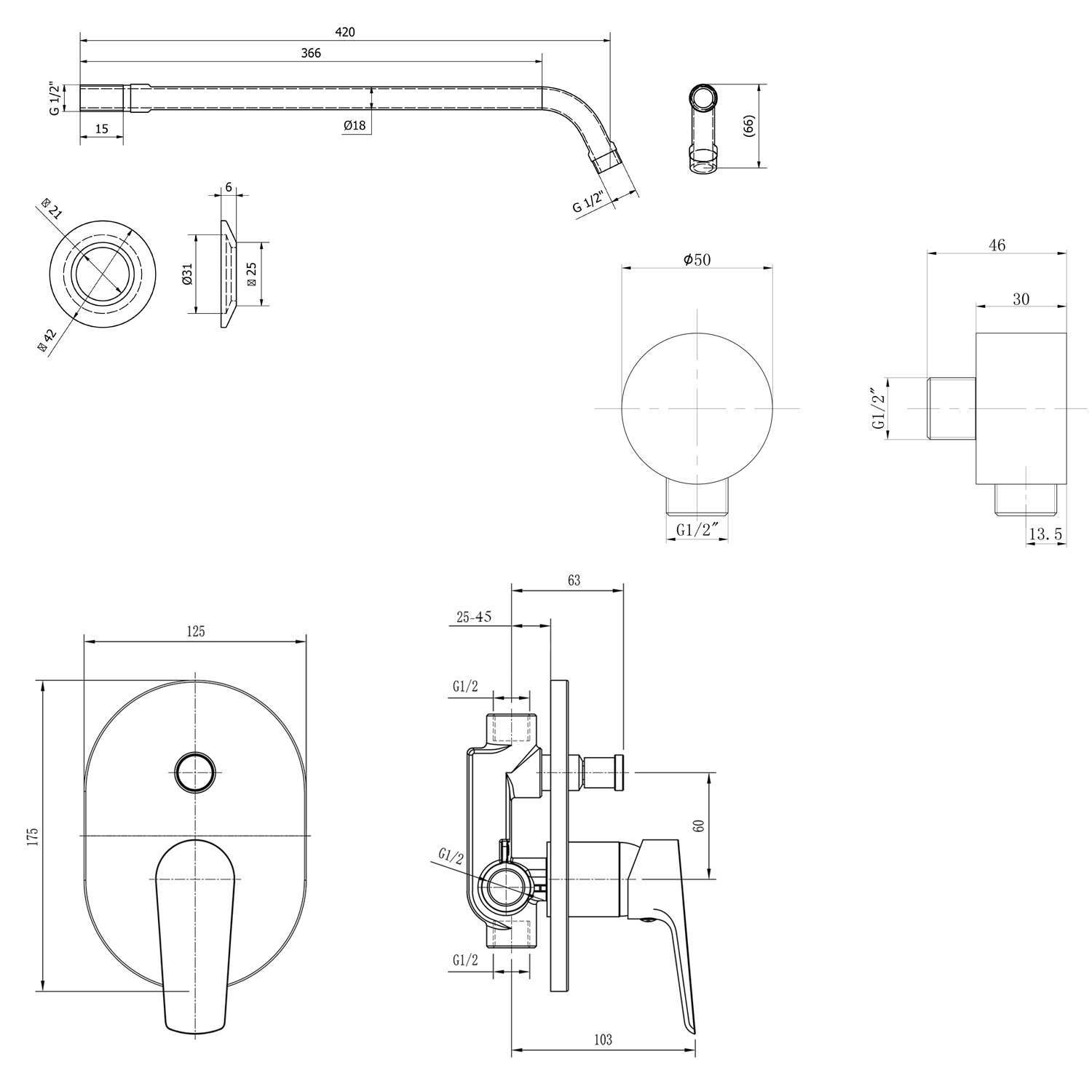 Aqualine LOTTA podomítkový sprchový set s pákovou baterií, 2 výstupy, chrom LT744