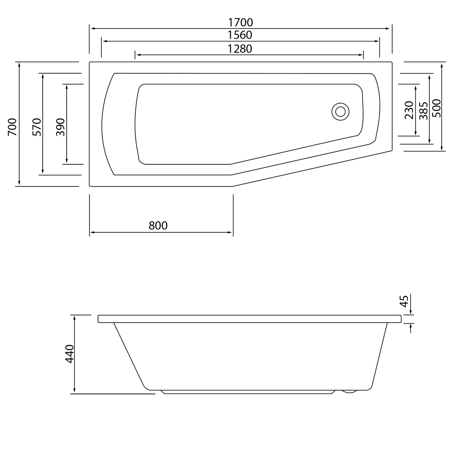Asymetrická rohová vana, která se dobře uplatní v malých koupelnách s nedostatkem prostoru. Při instalaci s vanovou zástěnou navíc umožňuje tvar vany pohodlné sprchování v rozšířené části.