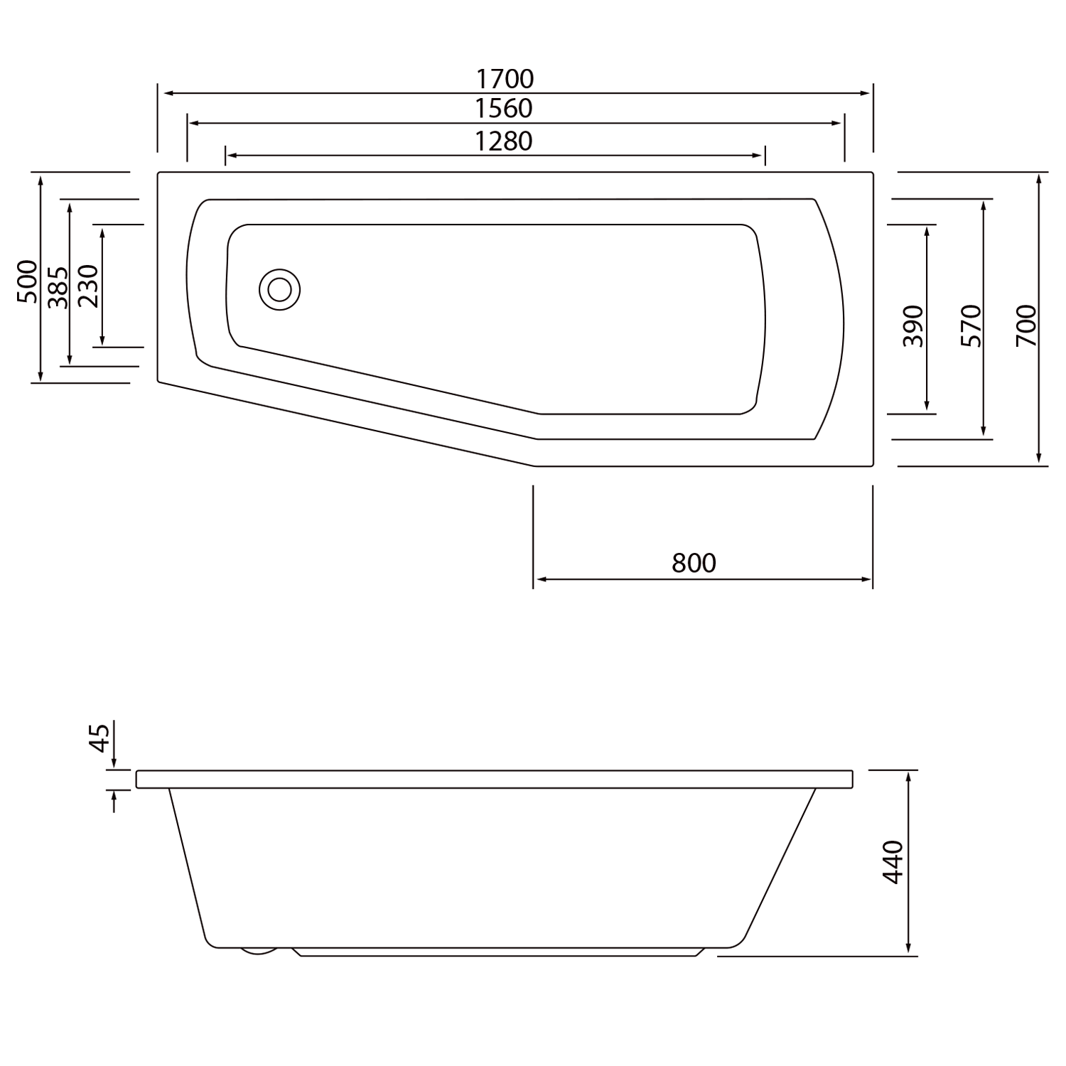 Asymetrická rohová vana, která se dobře uplatní v malých koupelnách s nedostatkem prostoru. Při instalaci s vanovou zástěnou navíc umožňuje tvar vany pohodlné sprchování v rozšířené části.