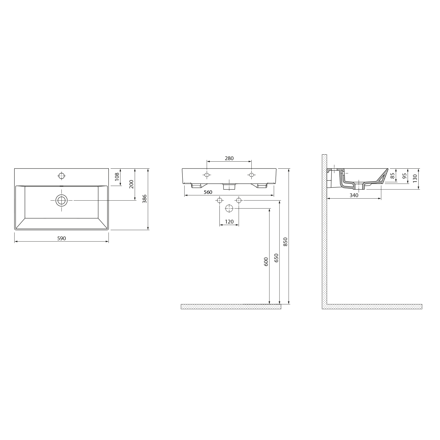 Aqualine ORION keramické umyvadlo 59x38,6cm, bílá 27060