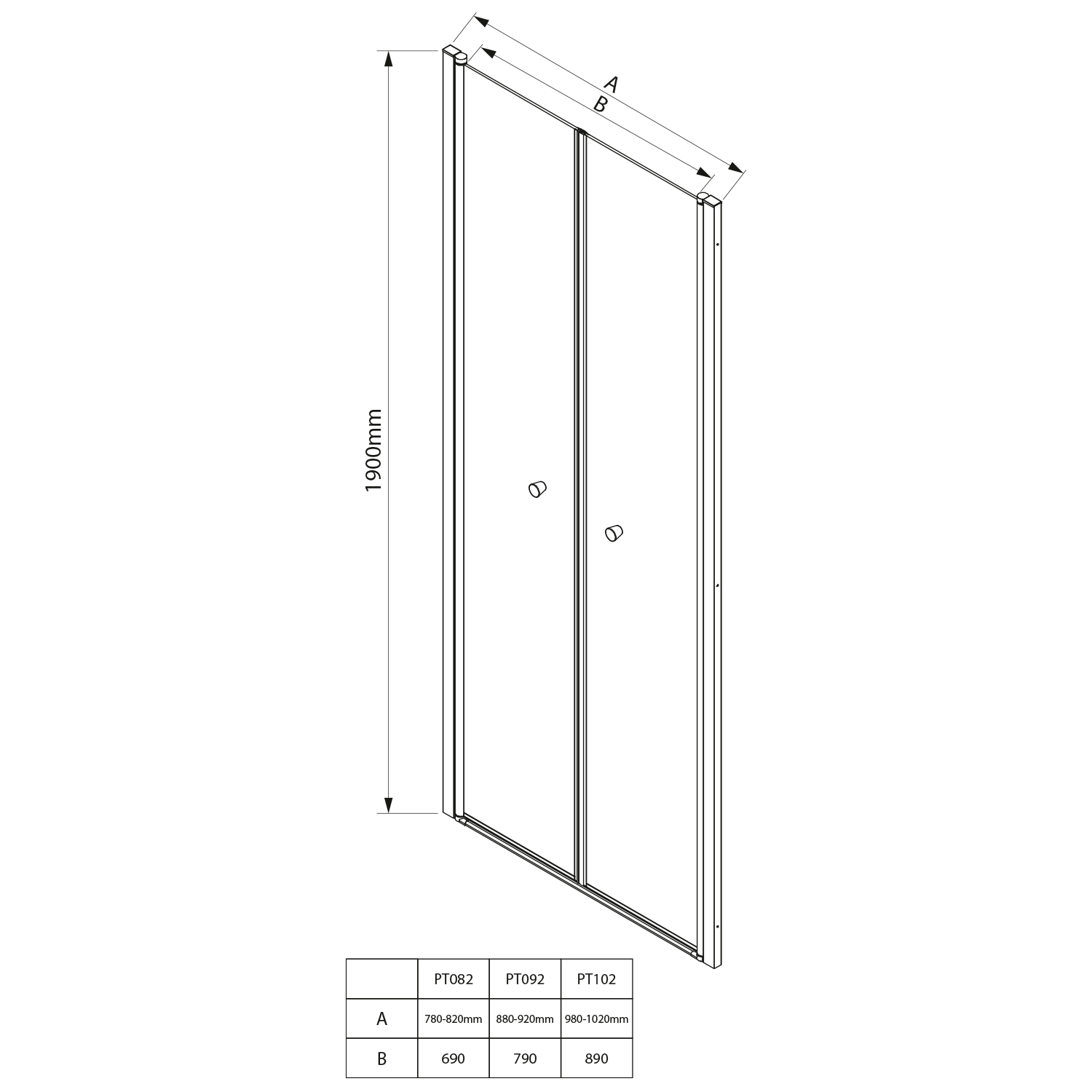 Aqualine PILOT otočné sprchové dveře dvojkřídlé 800mm PT082