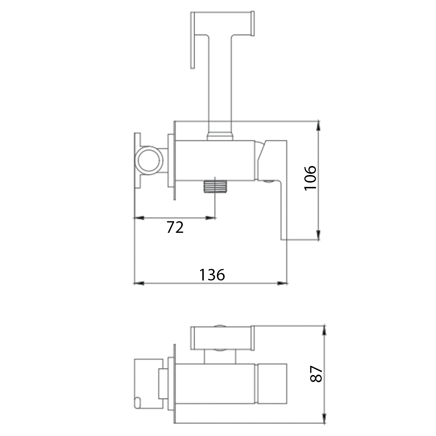 Aqualine Podomítková bidetová baterie se Stop sprškou, hadice 1,2m, kulatá, chrom SK302