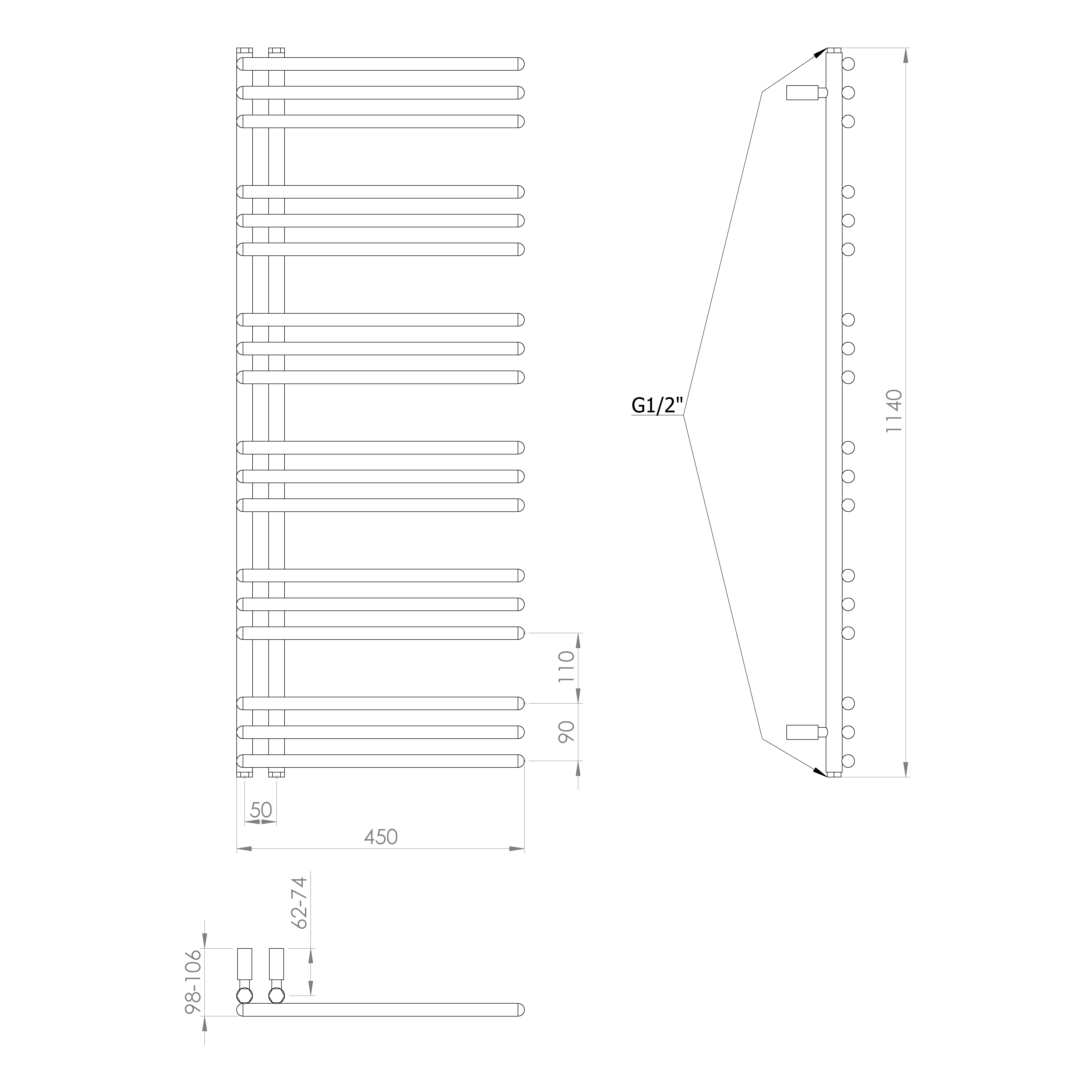 Klasické trubky s kruhovým profilem sestavené v designový radiátor, který lze díky středovému připojení s roztečí 50 mm kombinovat s ventily z naší nabídky.