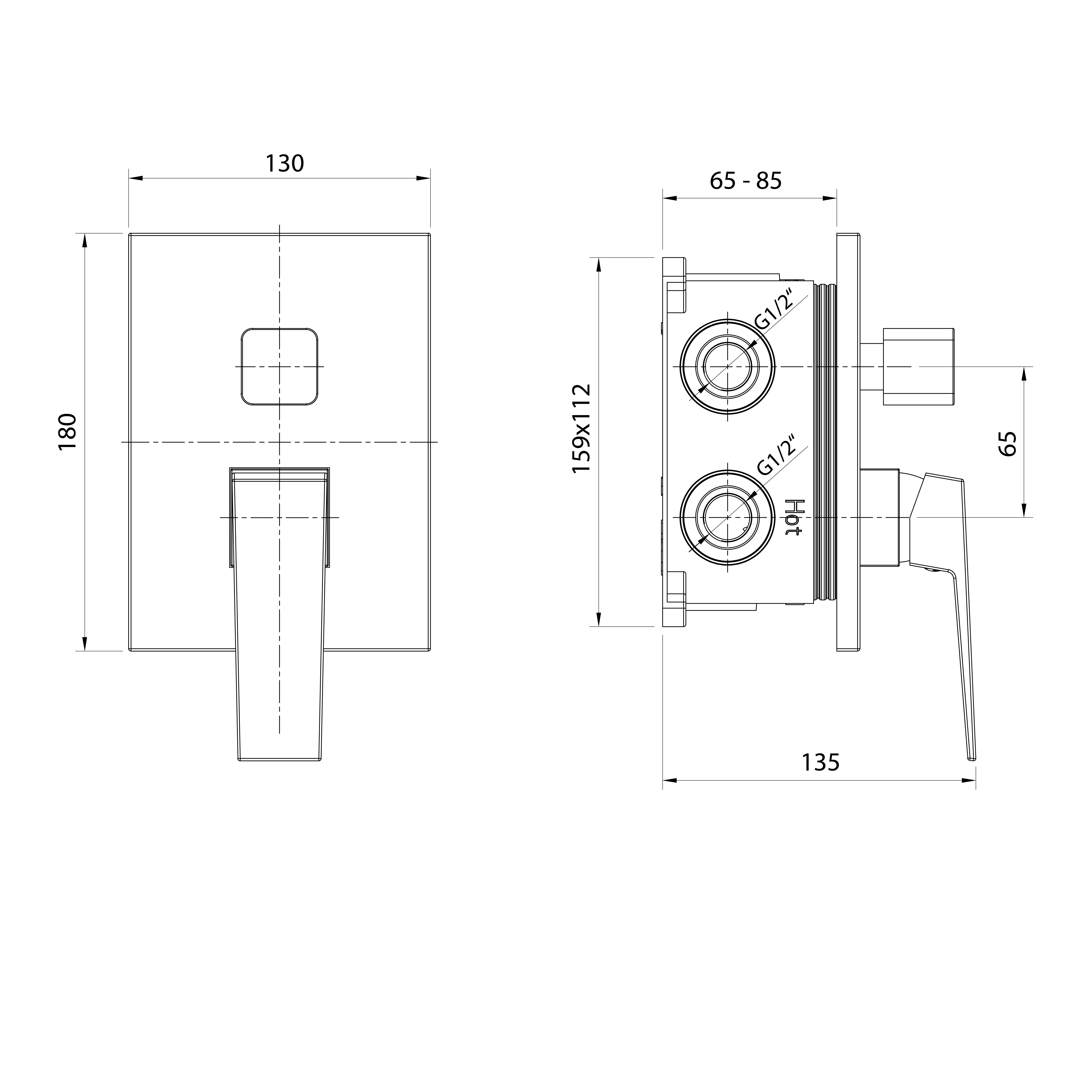 Aqualine RITMO podomítková sprchová baterie, box, 3 výstupy, chrom RT043