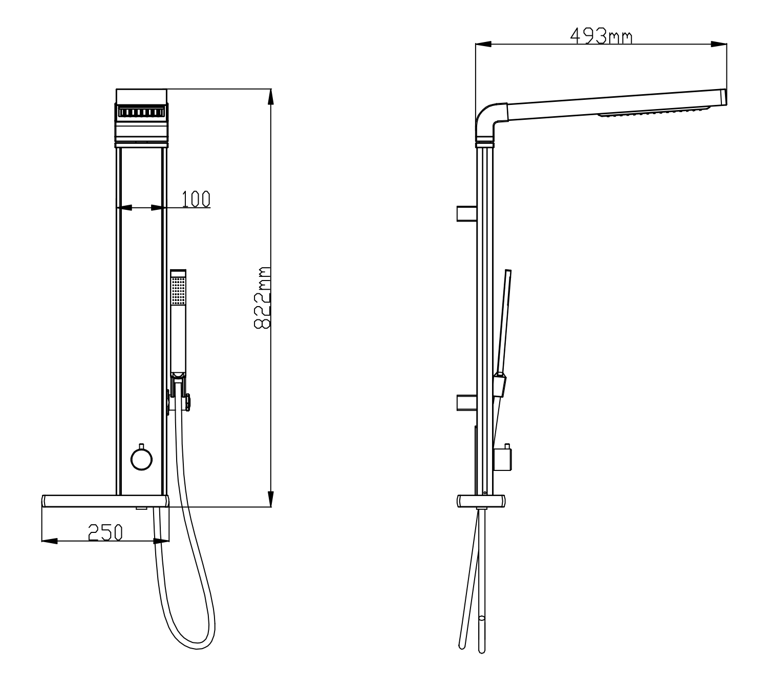 Aqualine ROME sprchový sloup k napojení na baterii, hlavová, ruční sprcha, chrom SL760