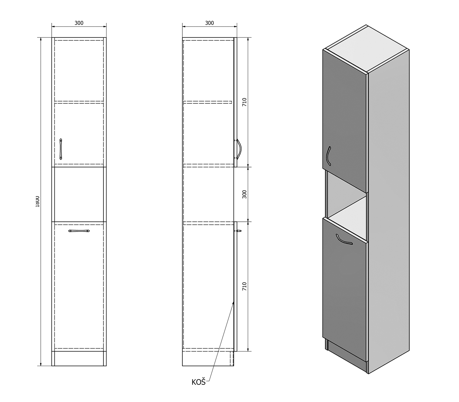 Aqualine SIMPLEX ECO vysoká skříňka s košem 30x180x30cm SIME310