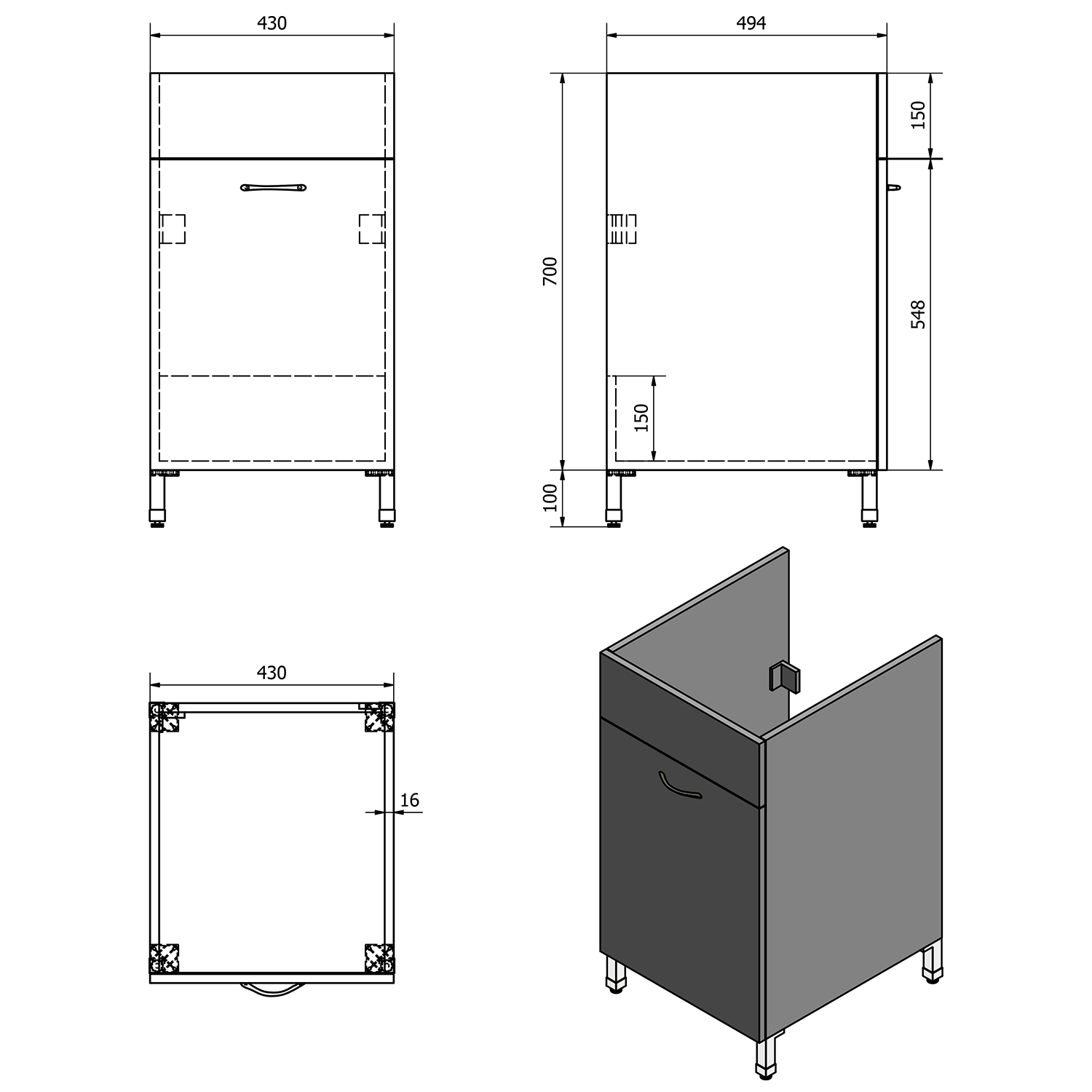 Výlevka není součástí skříňky, na výběr dva druhy výlevek.