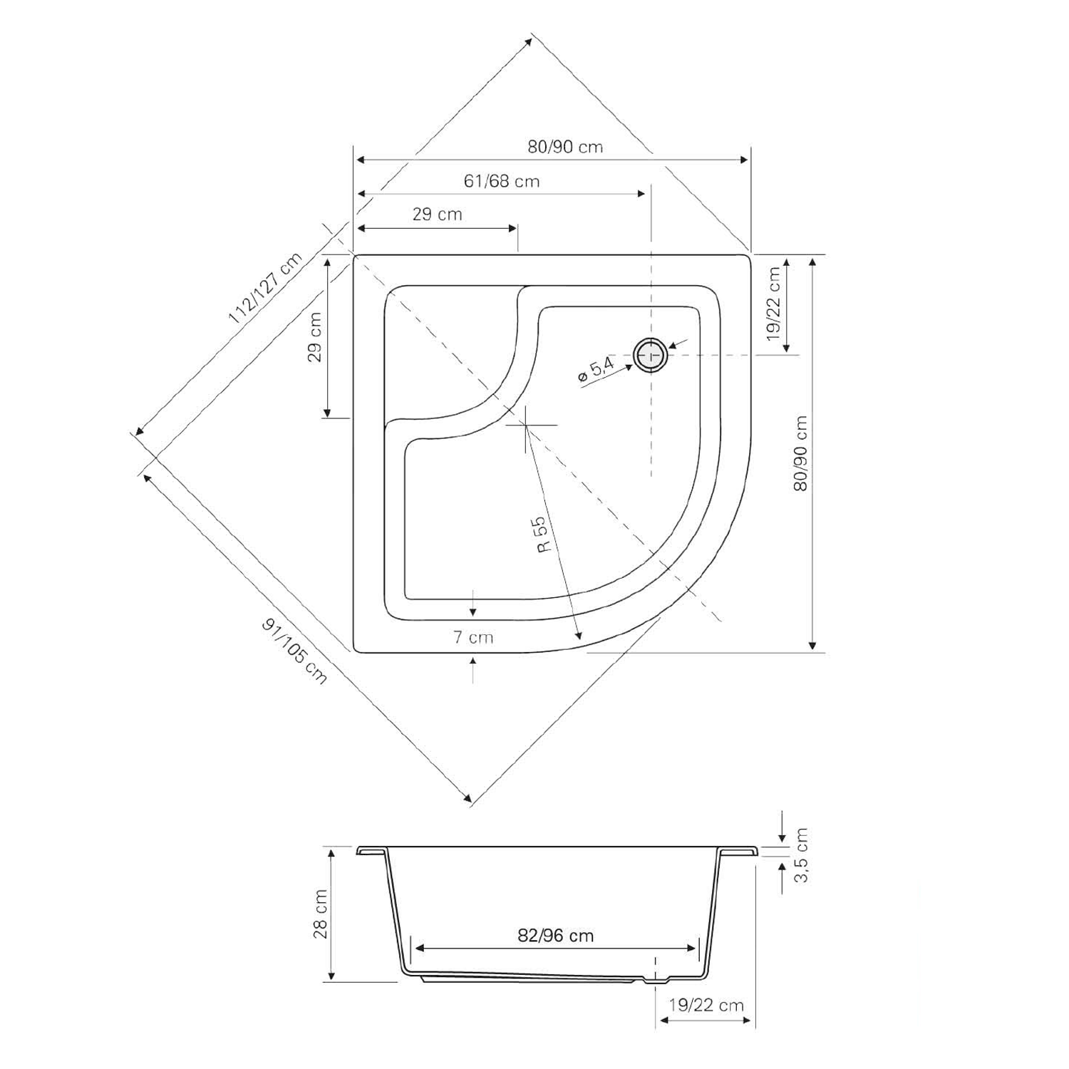 Aqualine Sprchová vanička akrylátová, čtvrtkruh 90x90x28cm, včetně nožiček, R550 C93