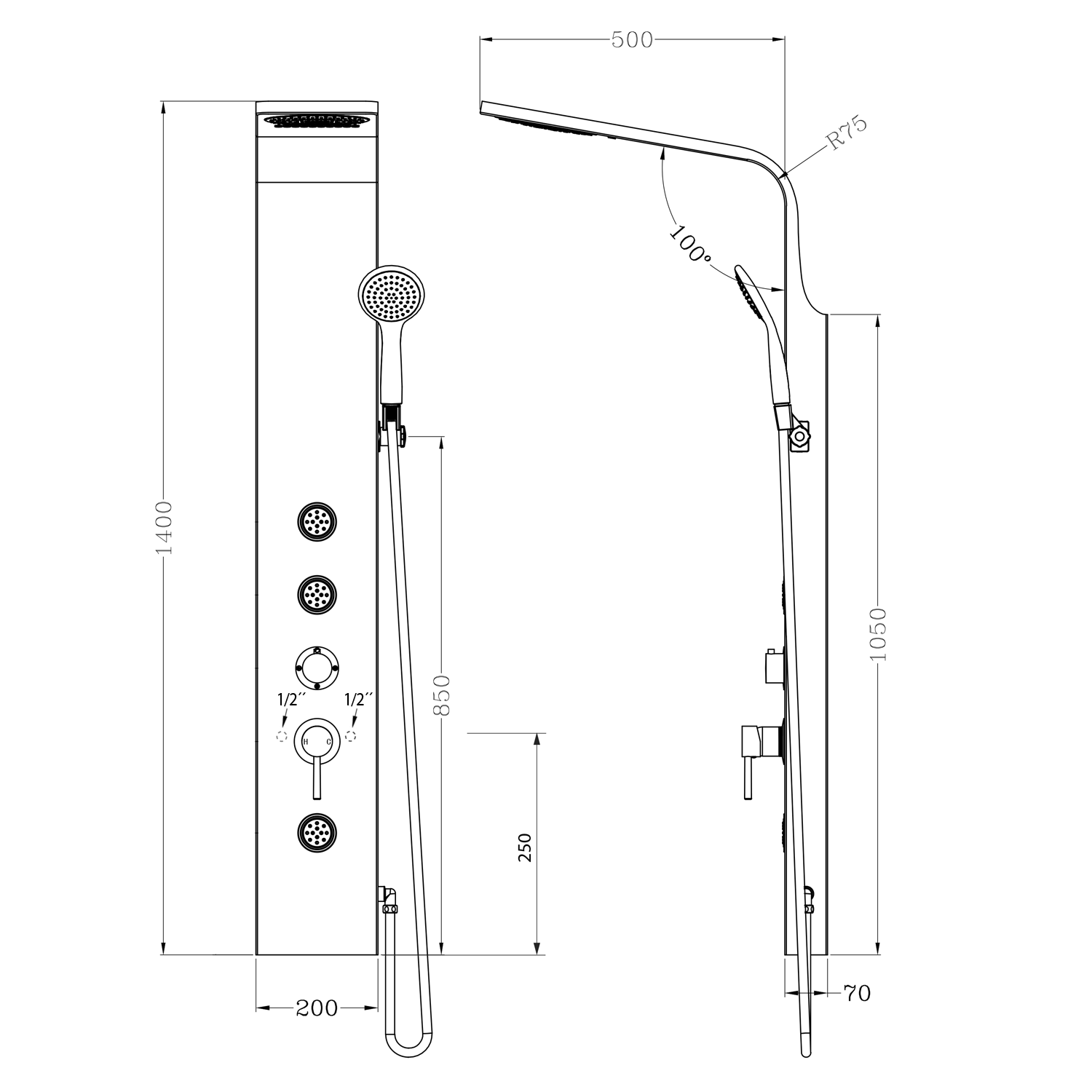 Aqualine TUSA sprchový panel 200x1400mm, stříbrná SL680