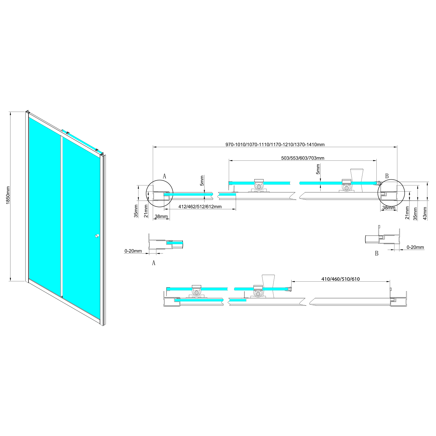 Aqualine UGGA posuvné sprchové dveře 1100mm, čiré sklo ATS110