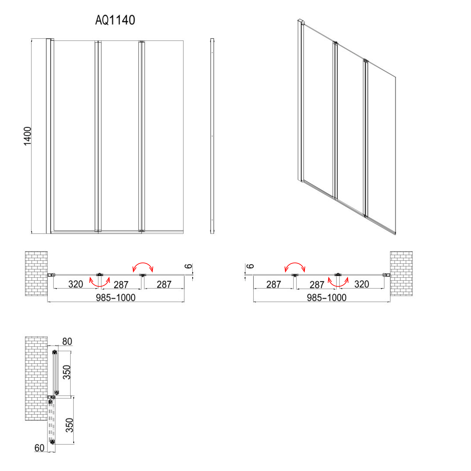 Aqualine VANDA vanová zástěna skládací 1000x1400 mm, chrom, sklo matné AQ1140