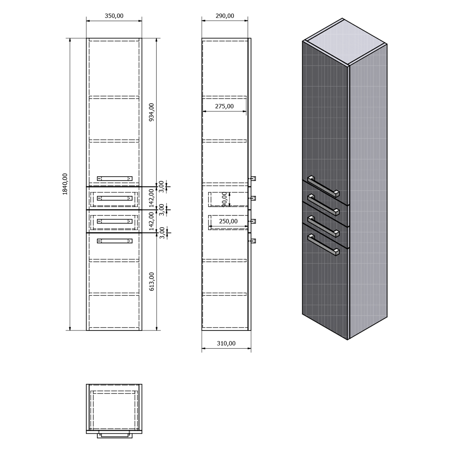 | Typ skříňky: | Zásuvky a dvířka |