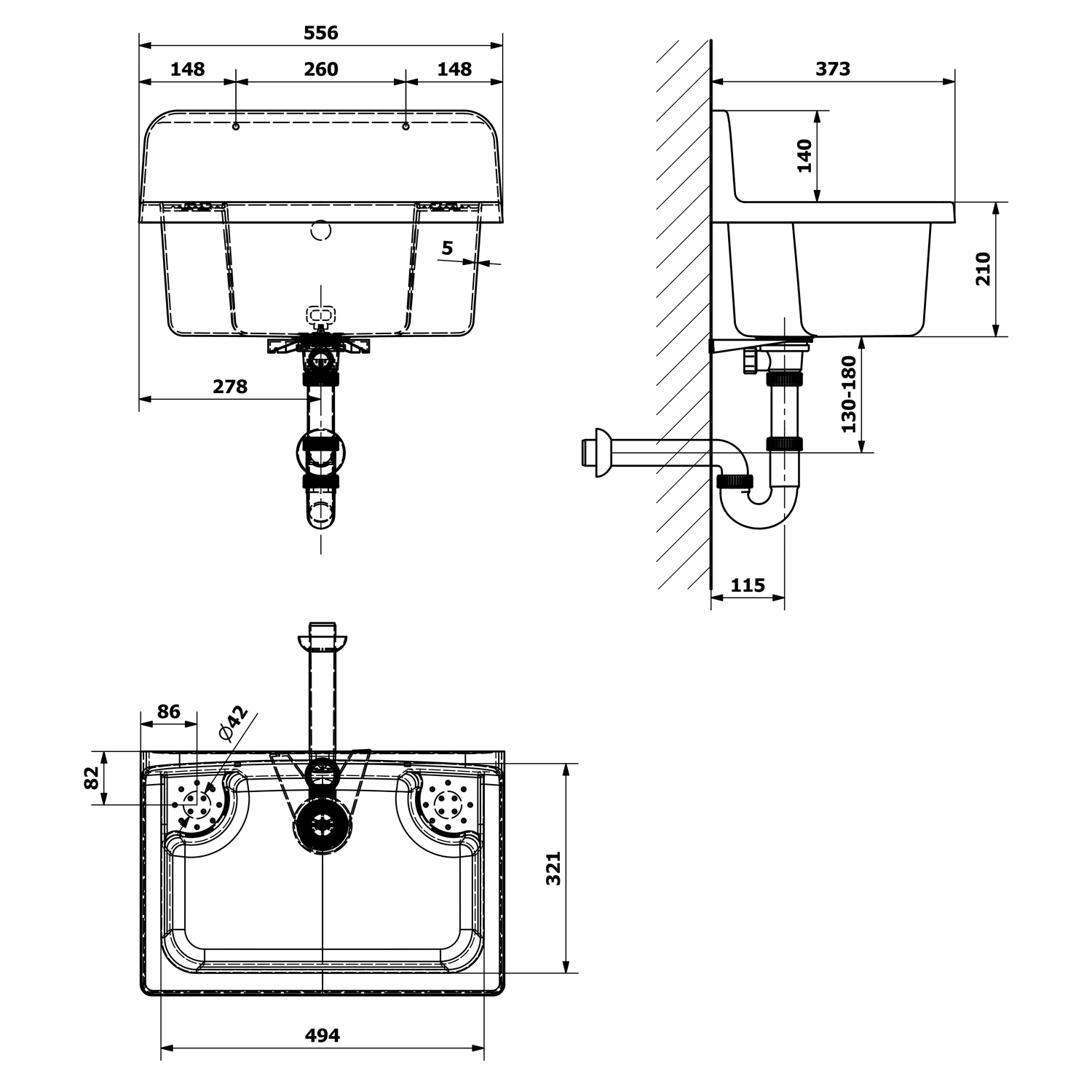 - Výpust a sifon s přepadovou soupravou jsou součástí balení.