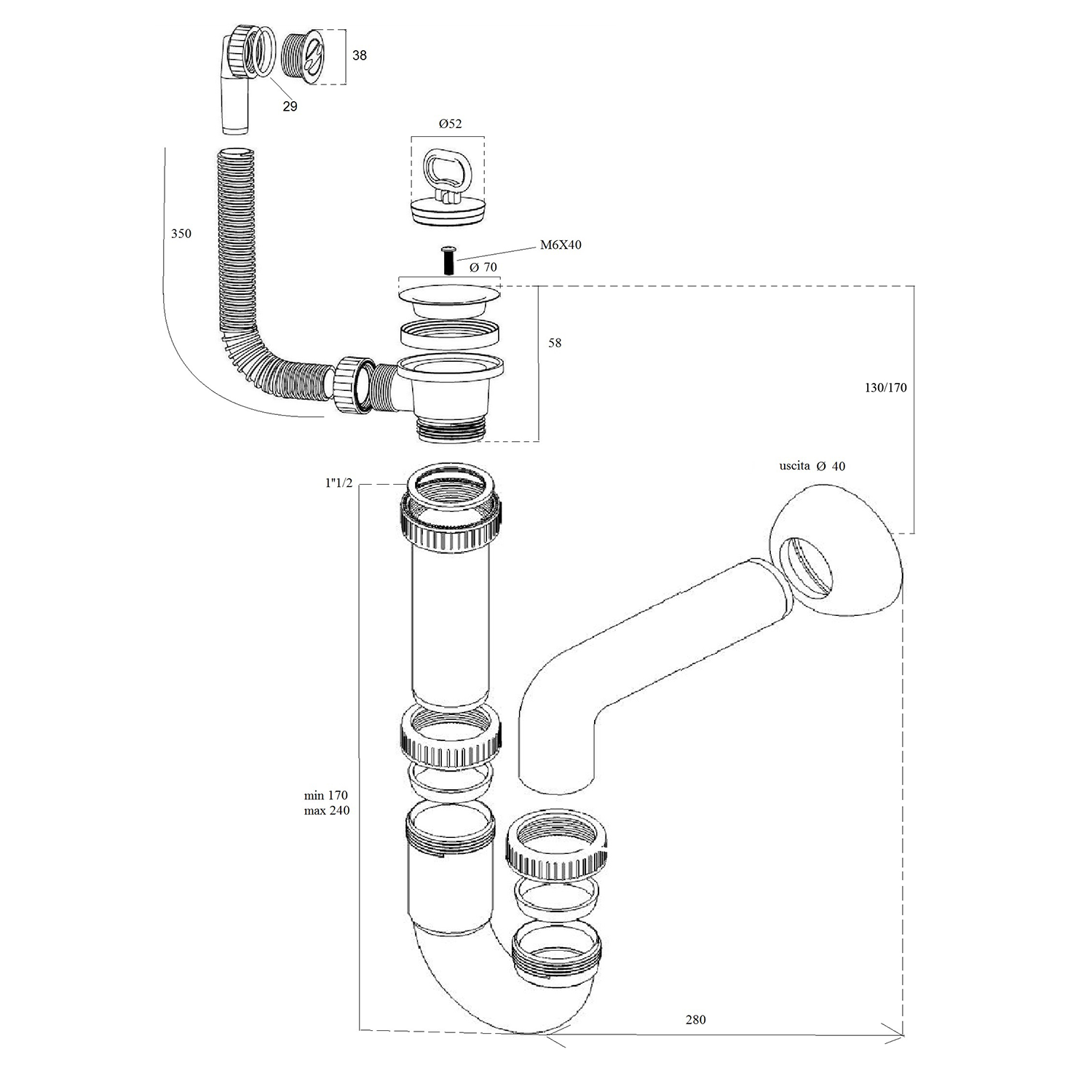- Výpust a sifon s přepadovou soupravou jsou součástí balení.
