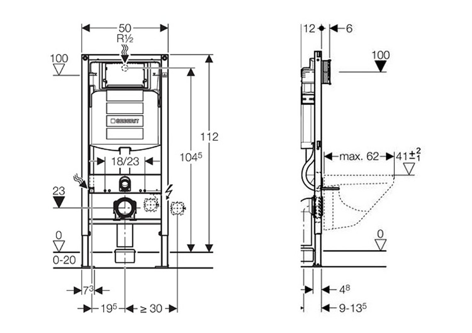 Aqualine Závěsné WC Nera s podomítkovou nádržkou do sádrokartonu a tlačítkem Geberit, bílá WC-SADA-16