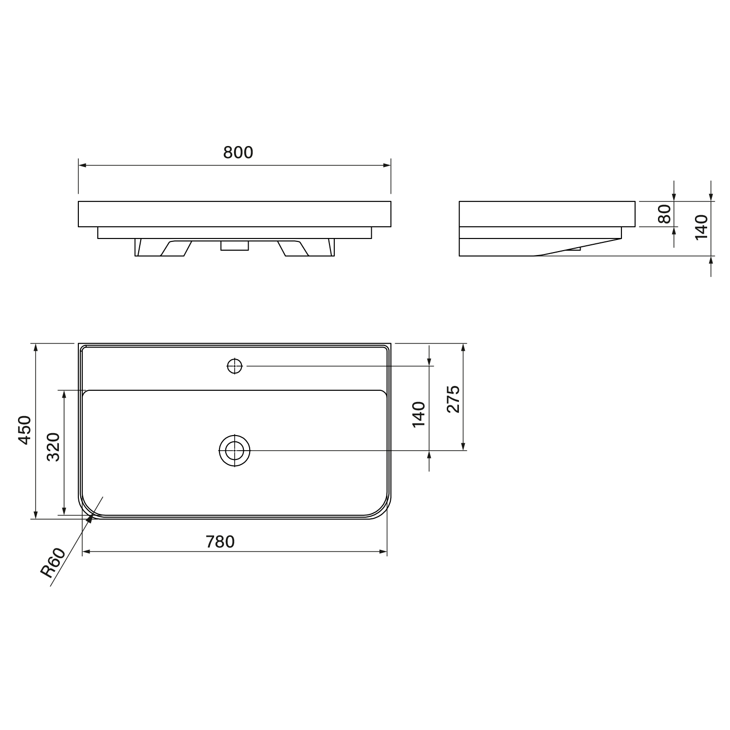 Aqualine ZEN keramické umyvadlo nábytkové 80x45cm, bílá 3080