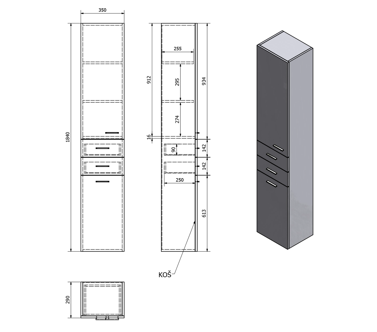 | Typ skříňky: | Zásuvky a dvířka |