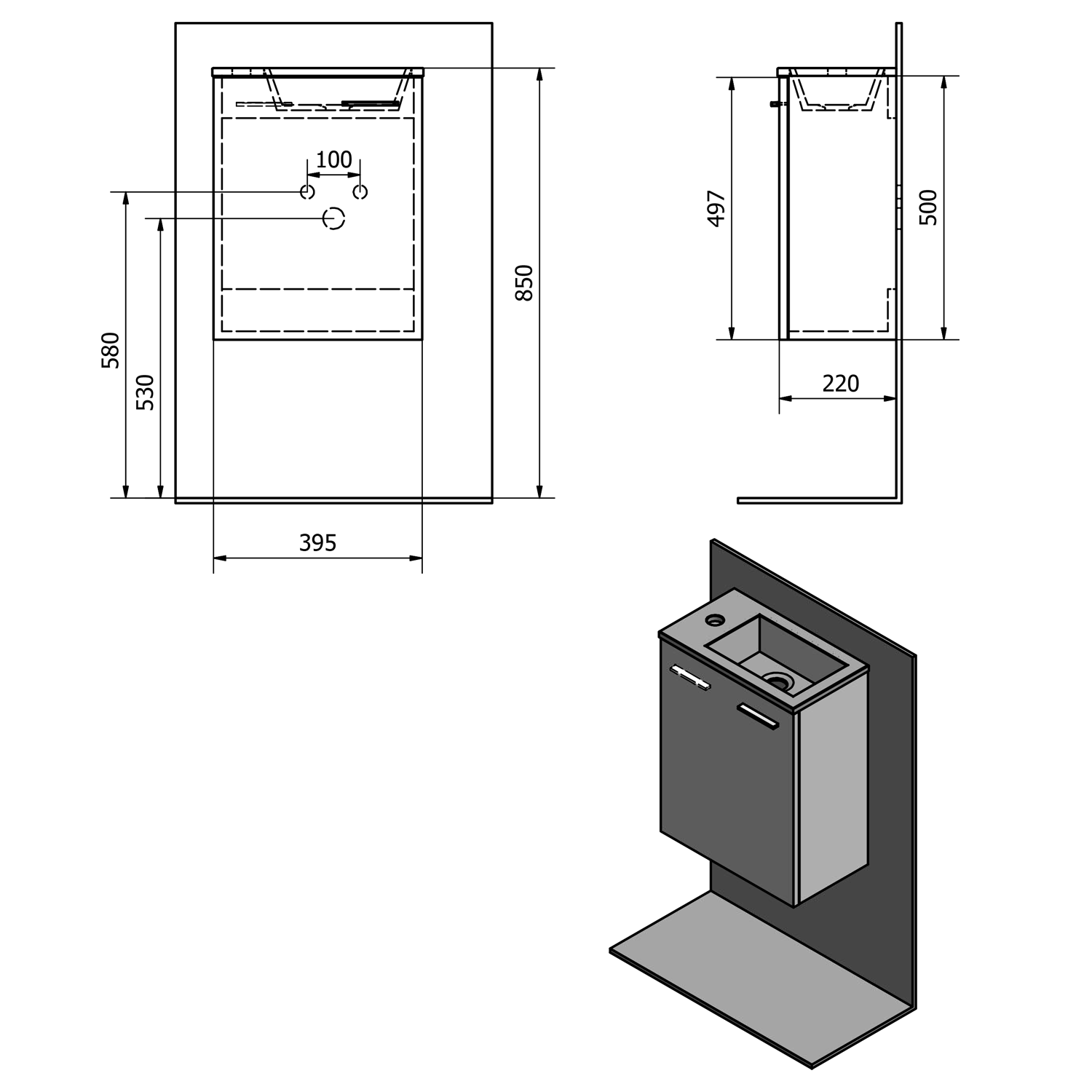 - Otvory pro úchytku jsou z vnitřní strany naznačeny.