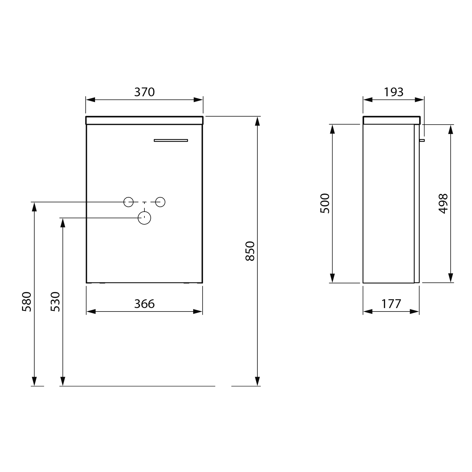 - Otvory pro úchytku jsou z vnitřní strany naznačeny, dle zvolené strany otevírání je třeba je vyvrtat.