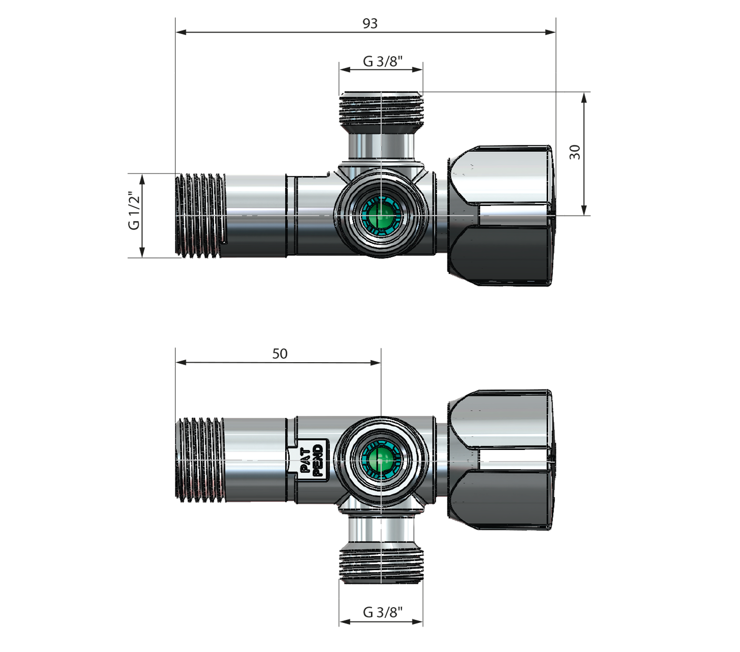 Rohový kombinovaný ventil A-80 obsahuje dva vývody vody, které lze uzavírat a otevírat nezávisle na sobě. Oba vývody je také možné současně otevřít i zavřít.