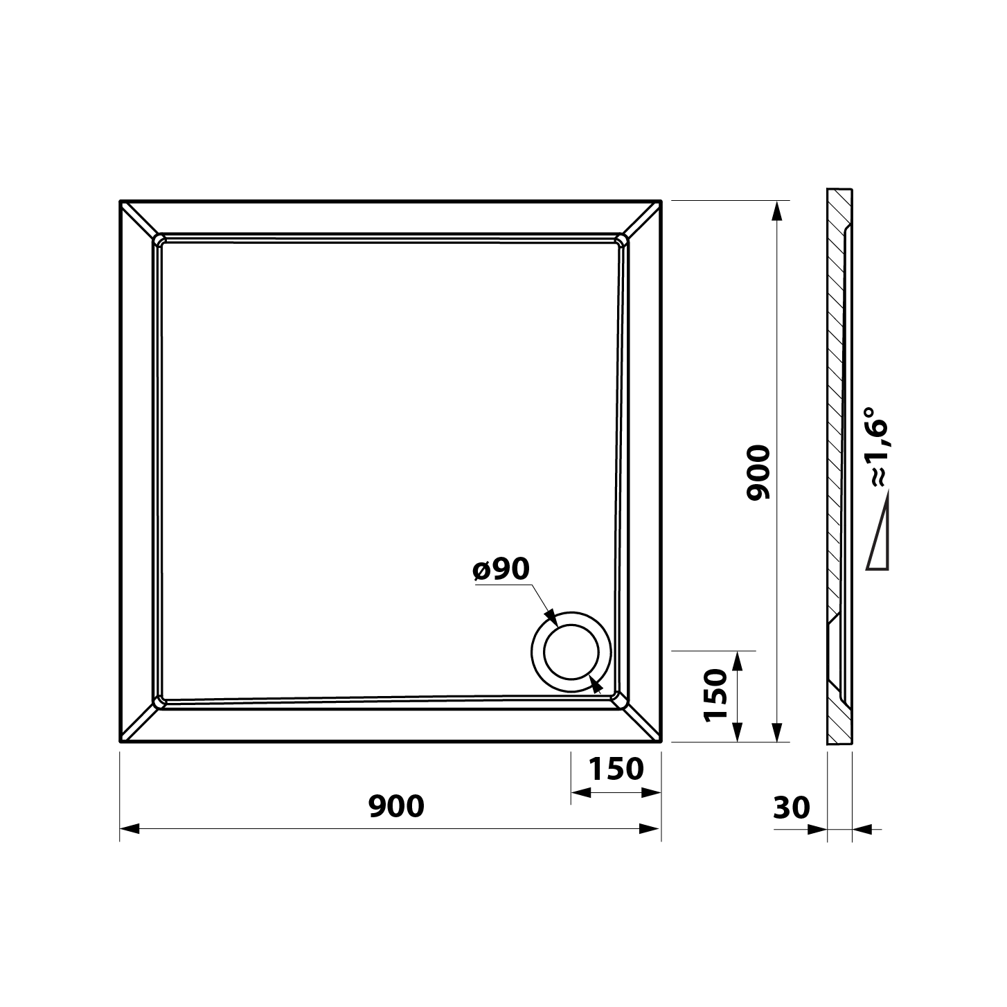 Bruckner ELSE sprchová vanička z litého mramoru, čtverec 90x90cm, bílá 800.112.4