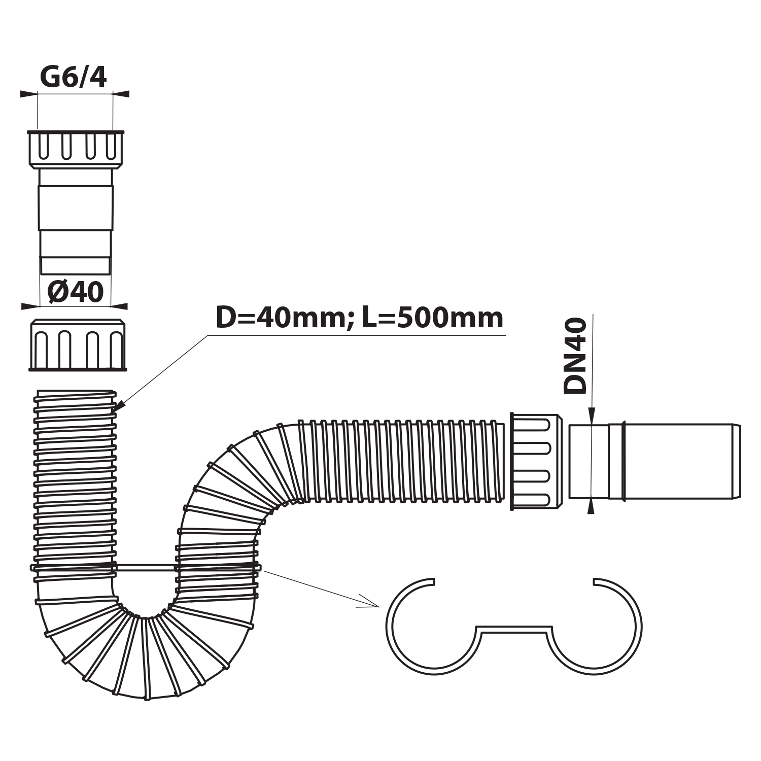 Flexibilní umyvadlový sifon je vyroben z pevného plastu. Seříznutím lze zkrátit na požadovanou délku. Díky hladké vnitřní stěně nedochází k usazování nečistot.