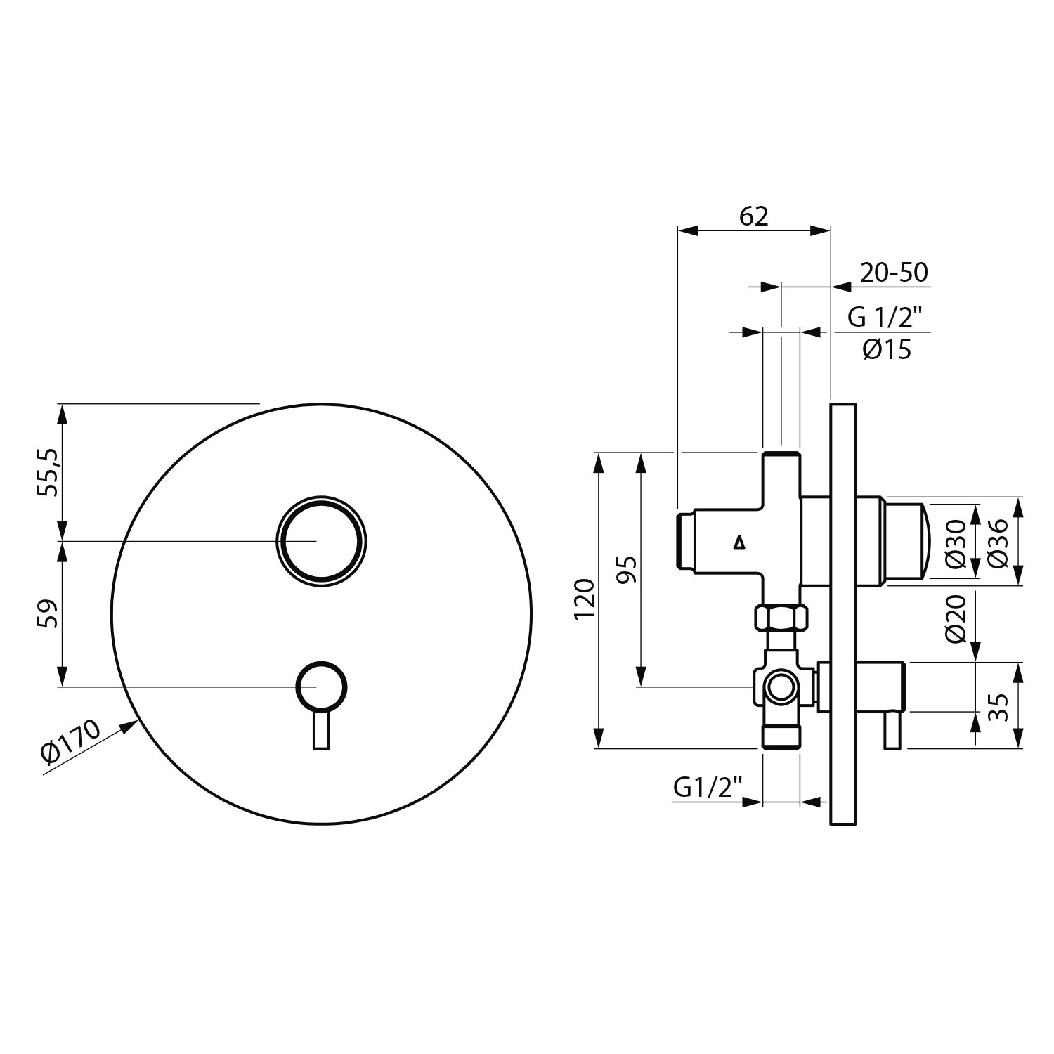 Bruckner TEMPOR samouzavírací podomítkový sprchový ventil s regulací teploty, chrom 937.141.1