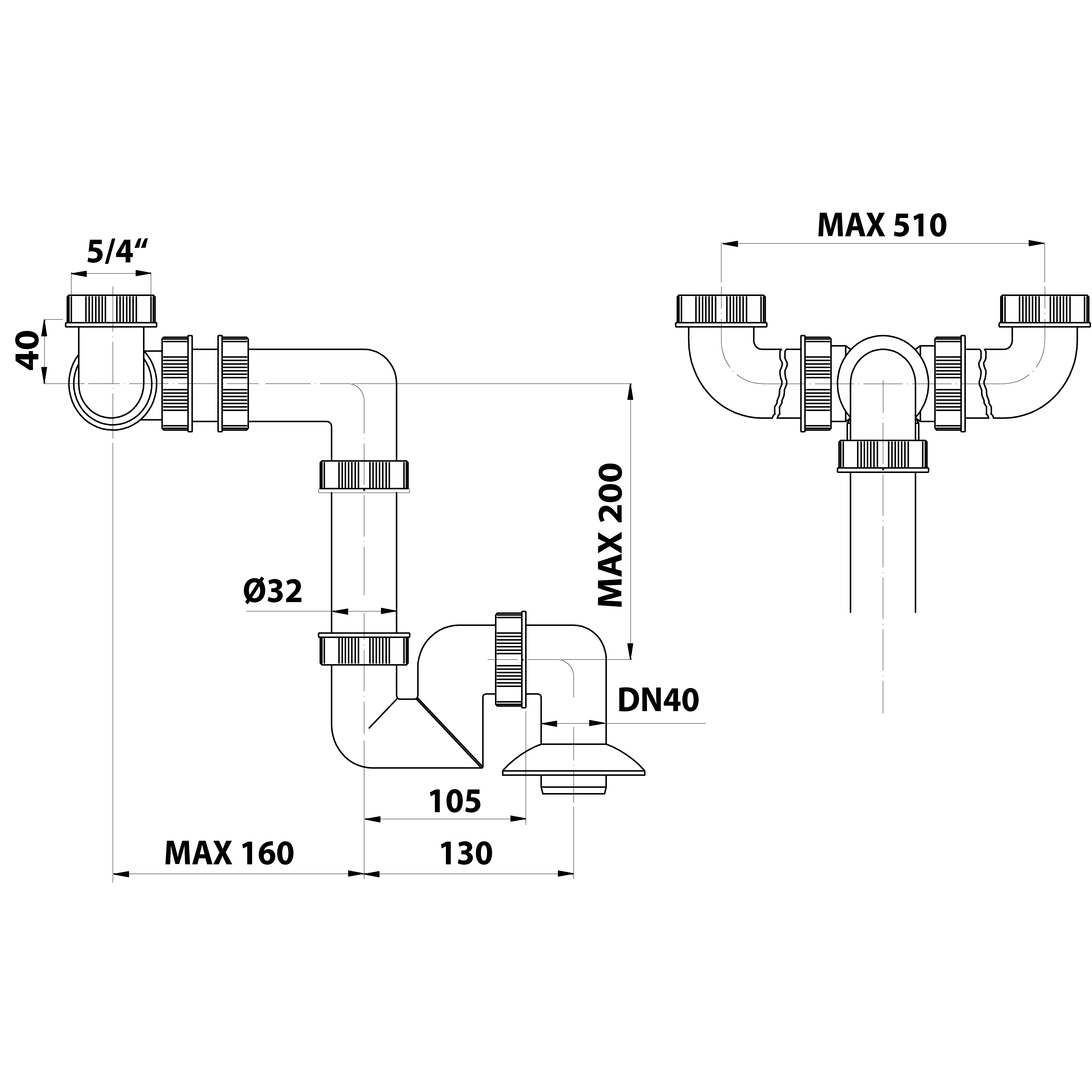 Bruckner Umyvadlový sifon pro dvojumyvadlo, 5/4", DN40, bílá 151.132.0