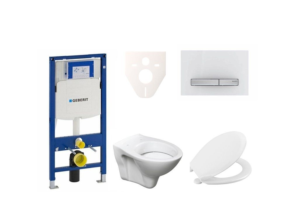 Závěsný WC set - sada obsahuje modul do lehkých stěn / předstěnová, WC nádržku Geberit a WC sedátko. WC prkénko je vyrobeno z materiálu Duroplast. Ovládací tlačítko je z materiálu plast a je v barevném provedení bílá.Doplňkové parametry