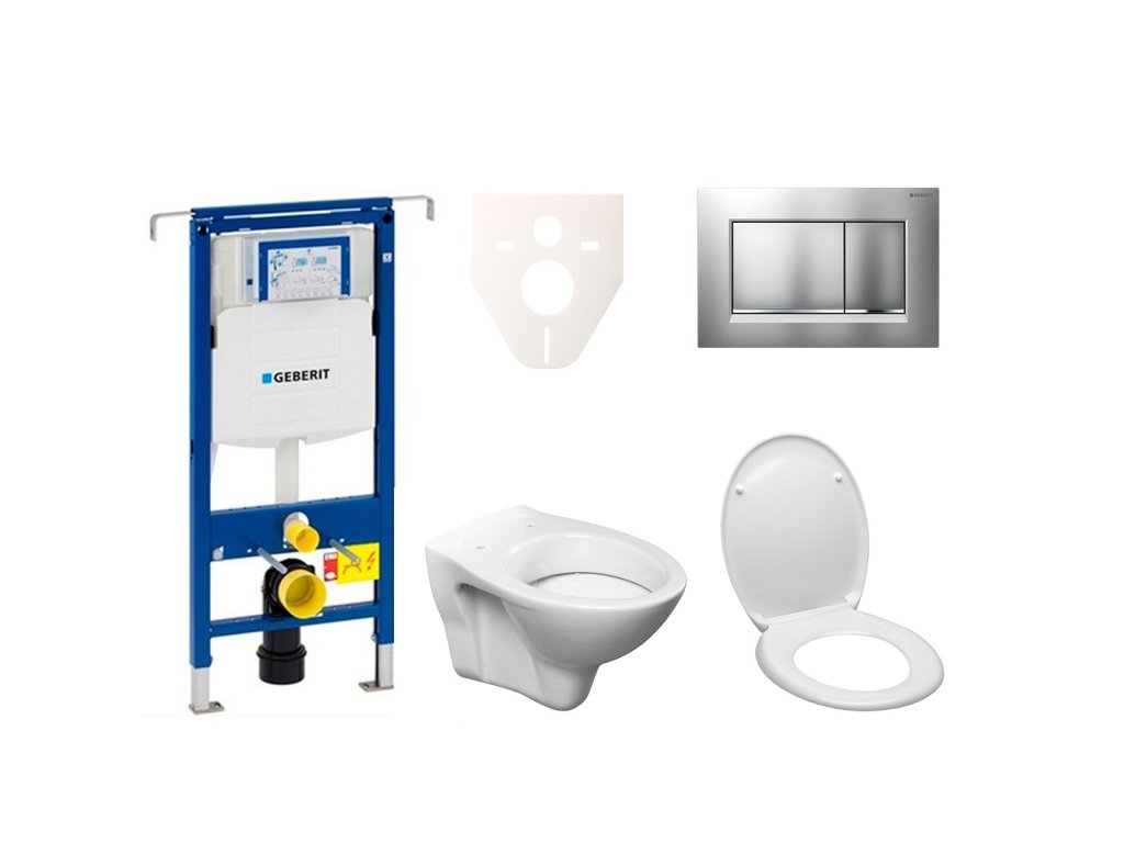 Závěsný WC set - sada obsahuje modul do lehkých stěn / předstěnová, WC nádržku Geberit a WC sedátko. WC prkénko je vyrobeno z materiálu Duroplast. Ovládací tlačítko je z materiálu plast a je v barevném provedení chrom matný.Doplňkové parametry