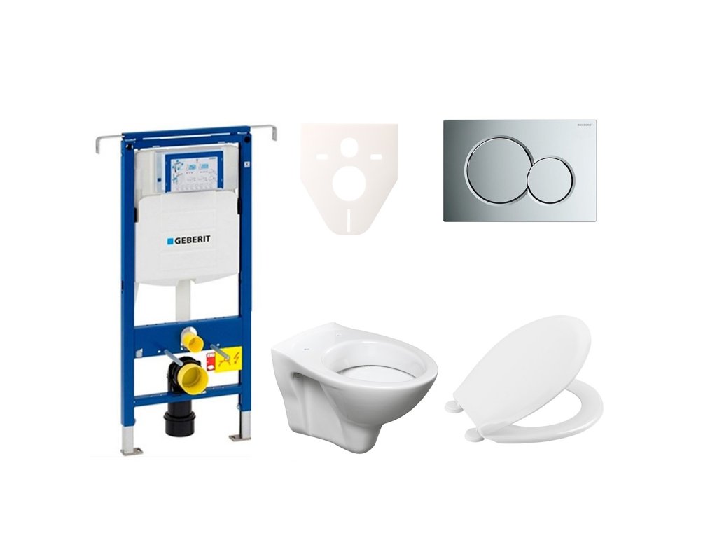 Závěsný WC set - sada obsahuje modul do lehkých stěn / předstěnová, WC nádržku Geberit a WC sedátko. WC prkénko je vyrobeno z materiálu Duroplast. Ovládací tlačítko je z materiálu plast a je v barevném provedení chrom lesklý.Doplňkové parametry