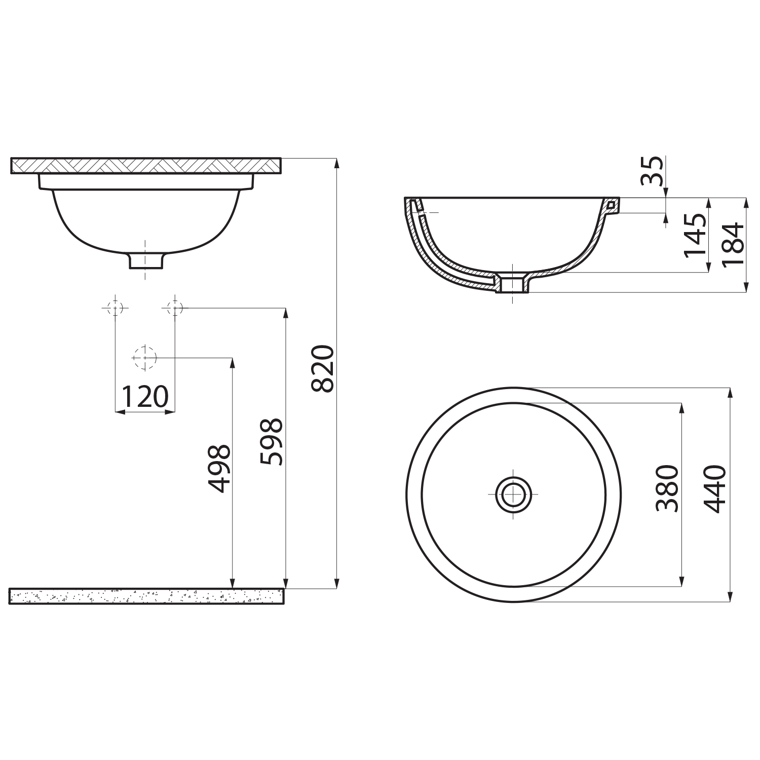 Instalace zapuštením pod desku, k desce se lepí pomocí silikonu.