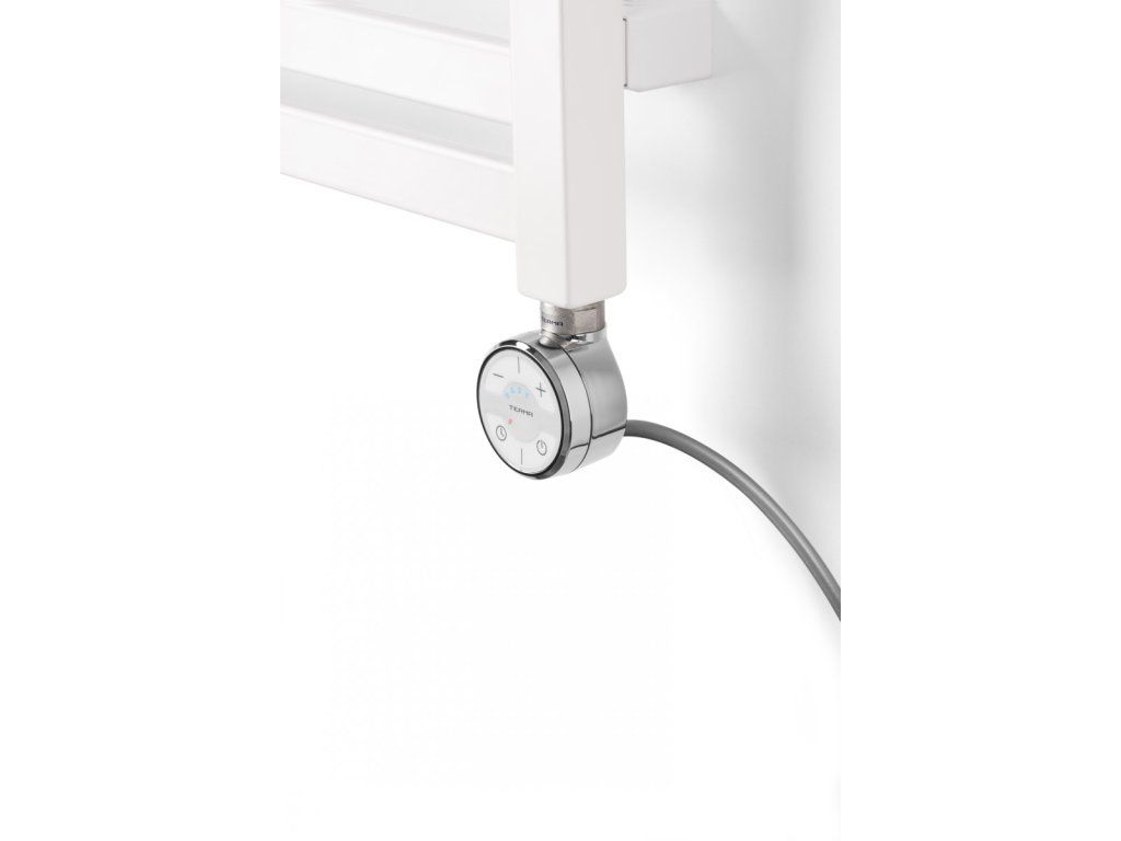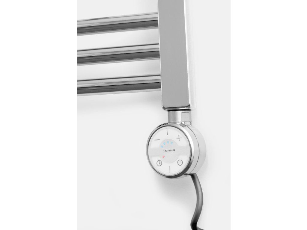 Regulátor MOA s minimalistickým designem a velkými tlačítky se jednoduše ovládá. Pomocí tlačítek můžete zapnout a vypnout nebo změnit teplotu topného prvku. MOA nabízí i možnost 2hodinového časovače, kdy jen stisknete tlačítko a regulátor se po 2 hodinách sám vypne. Tato funkce je užitečná, když chcete třeba jen vysušit ručníky. Elektrické topné těleso ohřívá a zároveň přesně kontroluje jeho teplotu. I. třída ochrany, stupeň krytí IPX5, provozní napětí 230V/50Hz, rozsah teplot 30-60 °C (s krokem 5 °C), připojovací závit G1/2" vnější (na topné tyči), výkon topné tyče 600 W. Pro detailnější informace a vlastnosti elektrického regulátoru Terma MOA klikněte ZDE.Doplňkové parametry