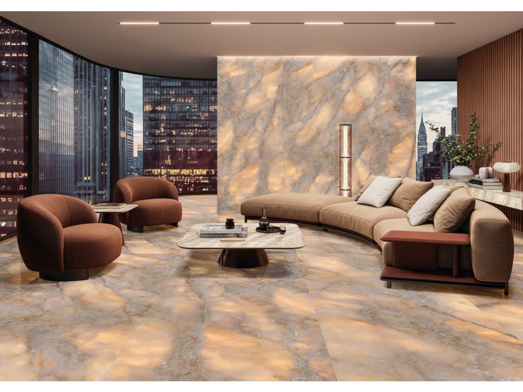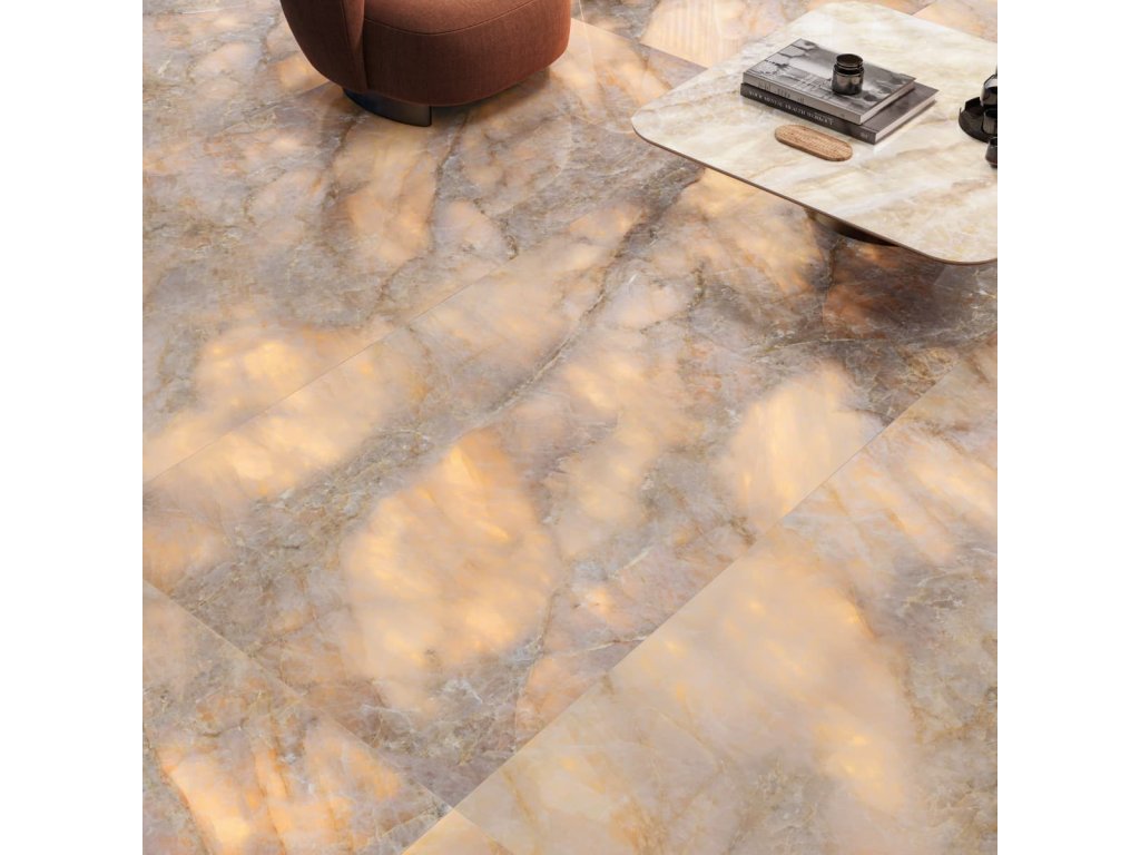 Rektifikované. Mrazuvzdorné. Dlažba v barevném provedení golden ambra a v imitaci mramoru o rozměru 59,8x119,8 cm a tloušťce 9 mm s lesklým povrchem. Vhodné do interiéru. V exteriéru vhodné pouze na stěnu. S velkými rozdíly v odstínu barev, struktury povrchu a kresby. Vhodné do kuchyně, kanceláří, na balkóny.Doplňkové parametry